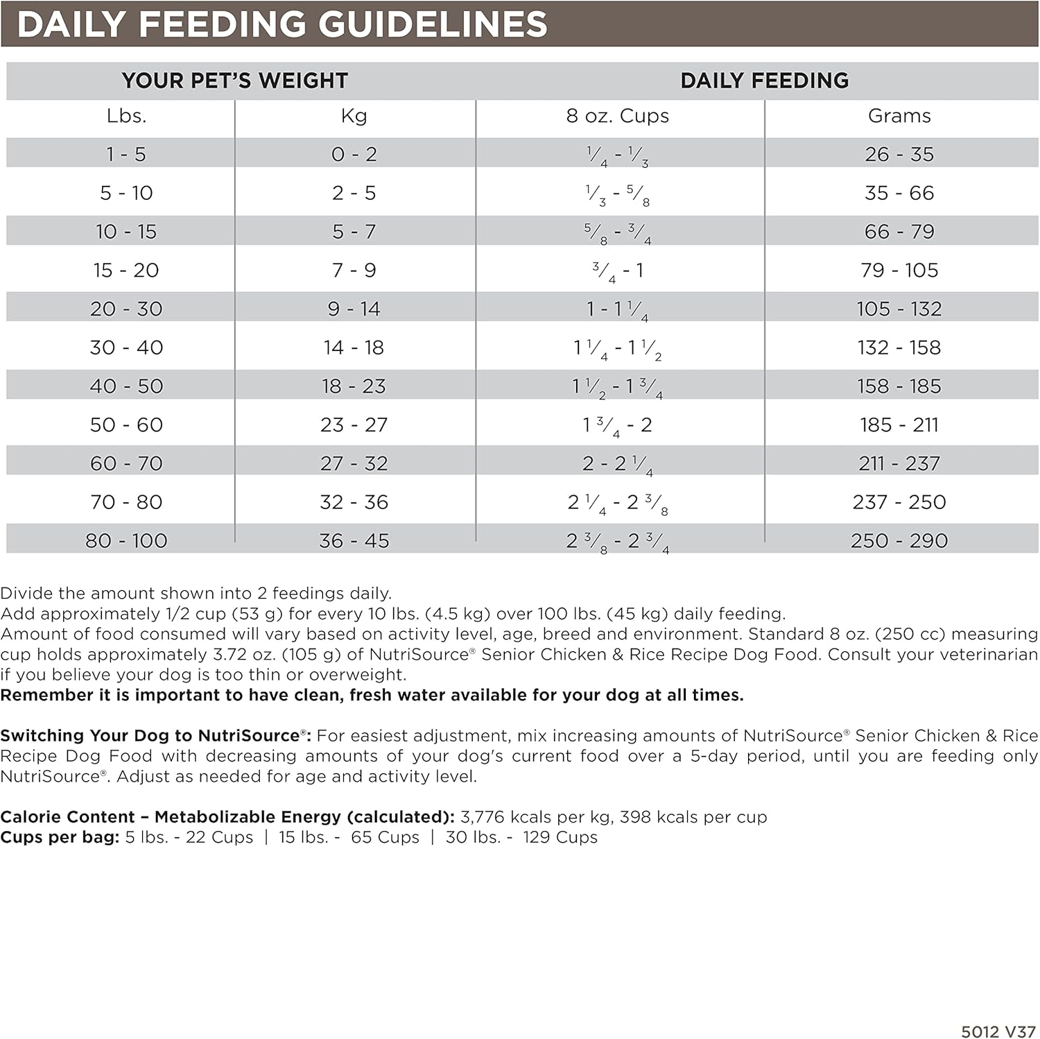 - As a member of our grain inclusive series, NutriSource Chicken and Rice Dry Dog Food is formulated to meet AAFCO guidelines for senior dogs