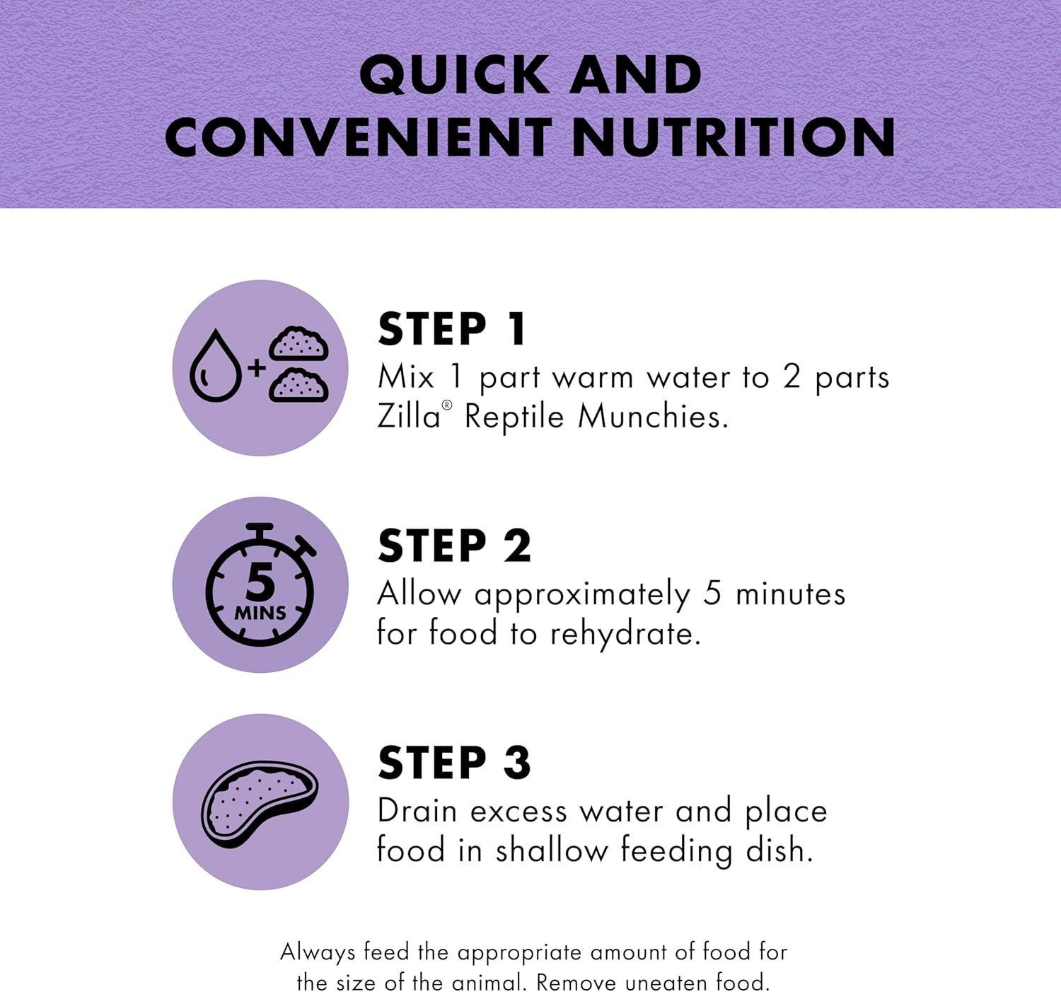 - TRY A VARIETY OF FLAVORS of Zilla Reptile Munchies. Available in Fruit Mix, Mealworm, Omnivore Mix, Vegetable and Fruit, Vegetable Mix and River Shrimp.