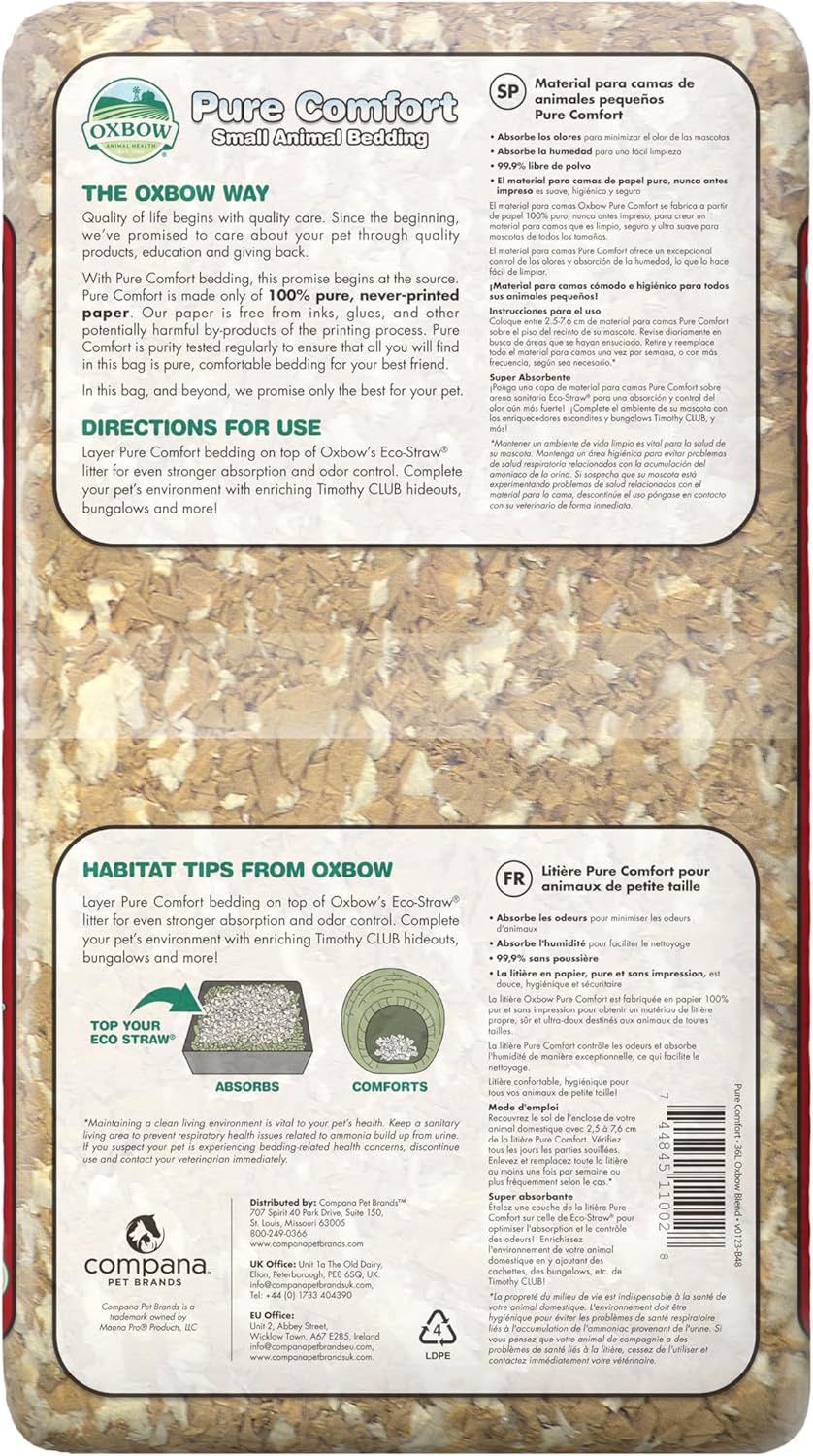- PURE PAPER FOR SAFETY & COMFORT: Made from never-printed paper, Oxbow bedding is ultra-soft and hygienic; Perfect for rabbit litter boxes and guinea pig cages, it provides a cozy and safe habitat for your small pets