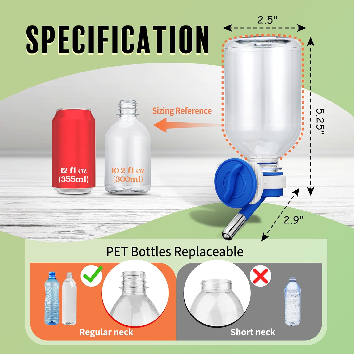 - š¾ Mini-sized Nozzle (10mm) is perfect for small animals, especially for Hamster/ Hedgehog/ Sugar Glider/ Rat/ Mice. Made of BPA Free Material/ 10.2 oz Capacity.