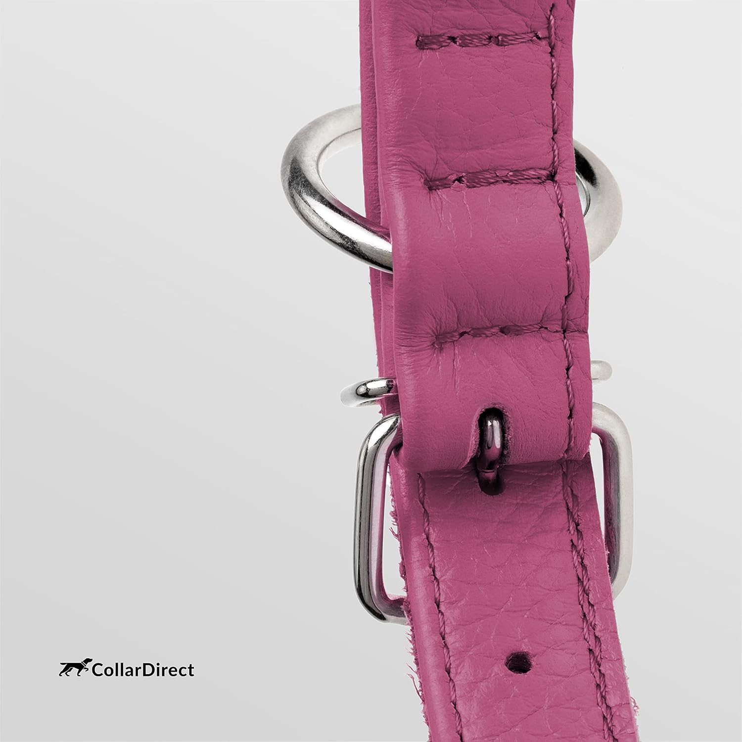 CollarDirect Rolled Leather Dog Collar, Soft Padded Round Puppy Collar, Handmade Genuine Leather Collar Dog Small Large Cat Collars 13 Colors (6-7 Inch, Pink Textured)