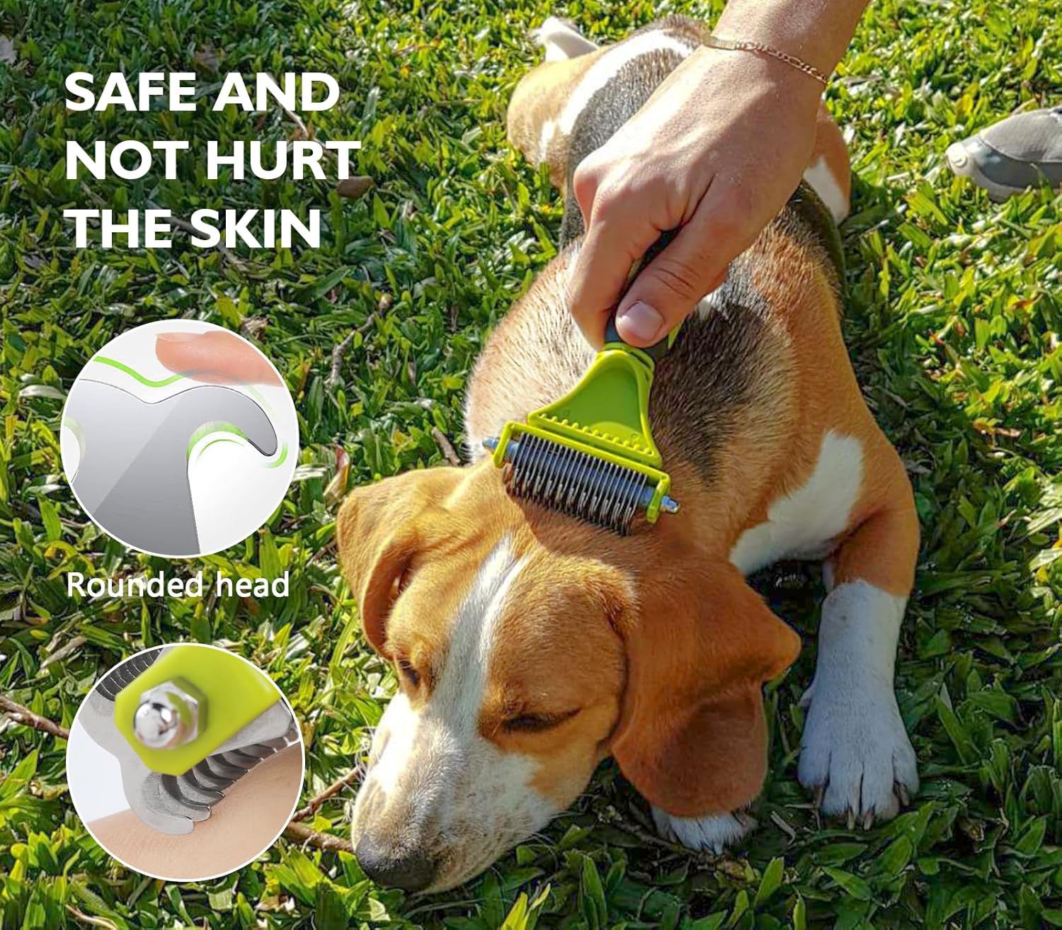 - No Scratch, No Pain : The extra-safe teeth of deshedding brush have rounded ends that massage the skin without scratching or irritating it, so your pet will feel completely comfortable. Sharp inside, so you can smoothly cut through the toughest mats and tangles without pulling or tugging the hair out. Get even the nastiest knots out with ease!