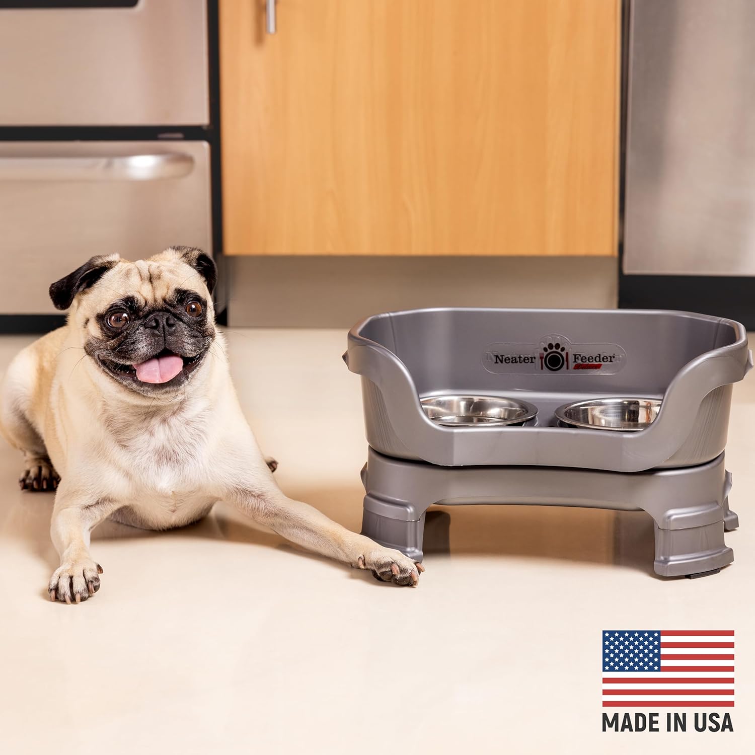 Neater Feeder Deluxe Mess Proof Dog Bowls Elevated for Small Breeds – Made in USA – No Spill Raised Dog Food Bowl Stand w/Leg Extensions – Stainless Steel Dog Food and Water Bowl Set – Grey