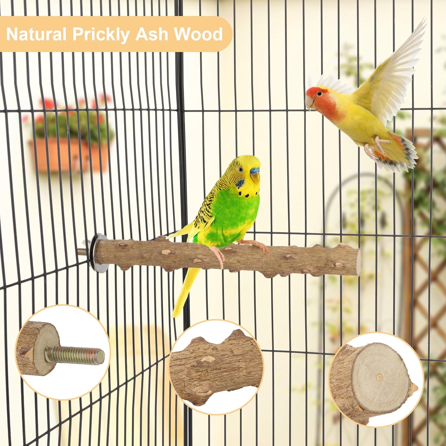 - 100% Natural Prickly Ash Wood – Safe Chewing & Zero Chemicals: Chemical-free bird perch made from dense hardwood, splinter-proof for parakeets, cockatiels, and parrots. No dyes or coatings – safer than plastic or rope perches.