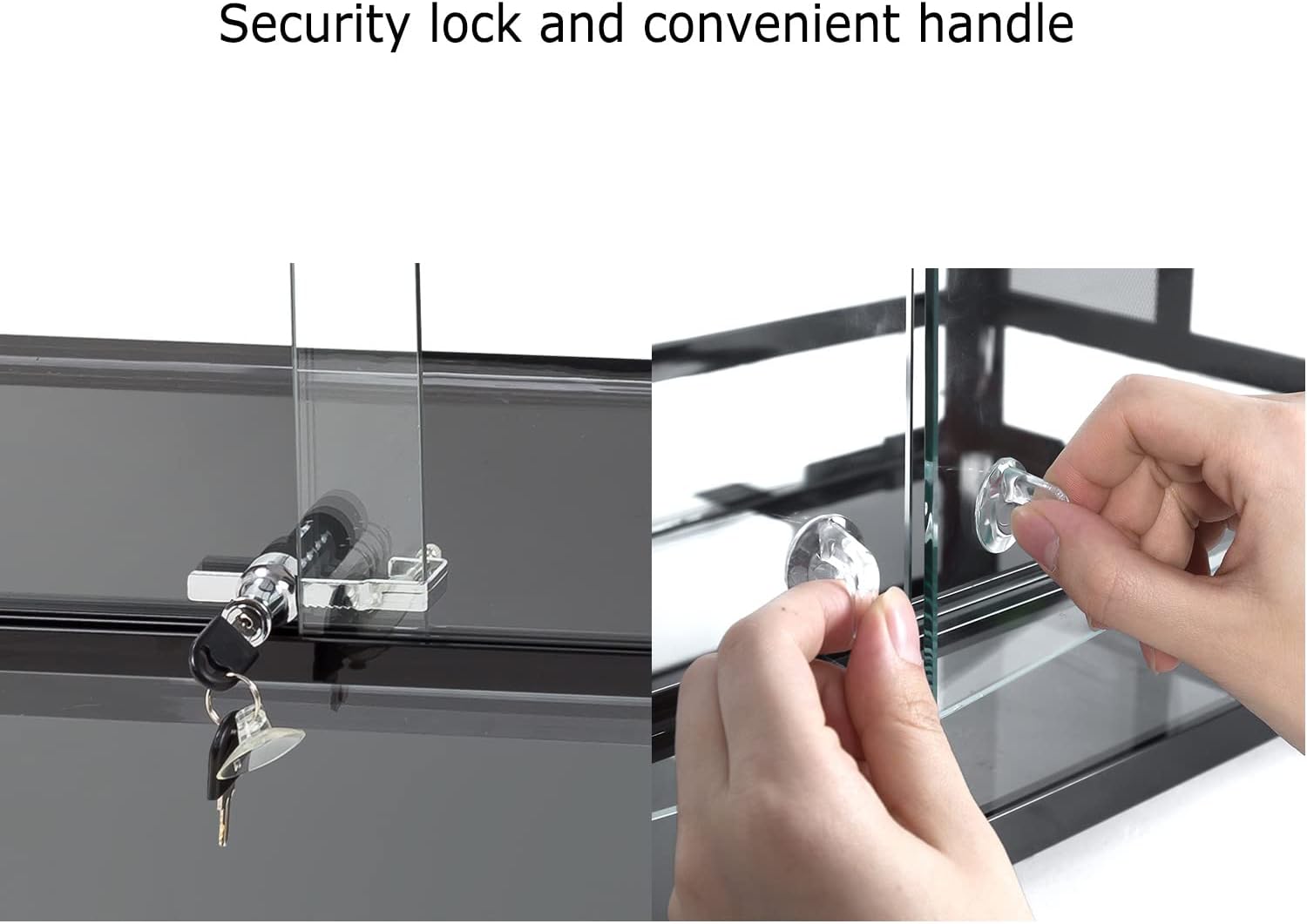- 【ANTI-ESCAPE】Security buckle on the lid ensure the tank closed tightly, prevent your reptile amphibian chameleon pets from escaping. And the security lock avoid the doors open accidently by your kids and keep your kids safe.