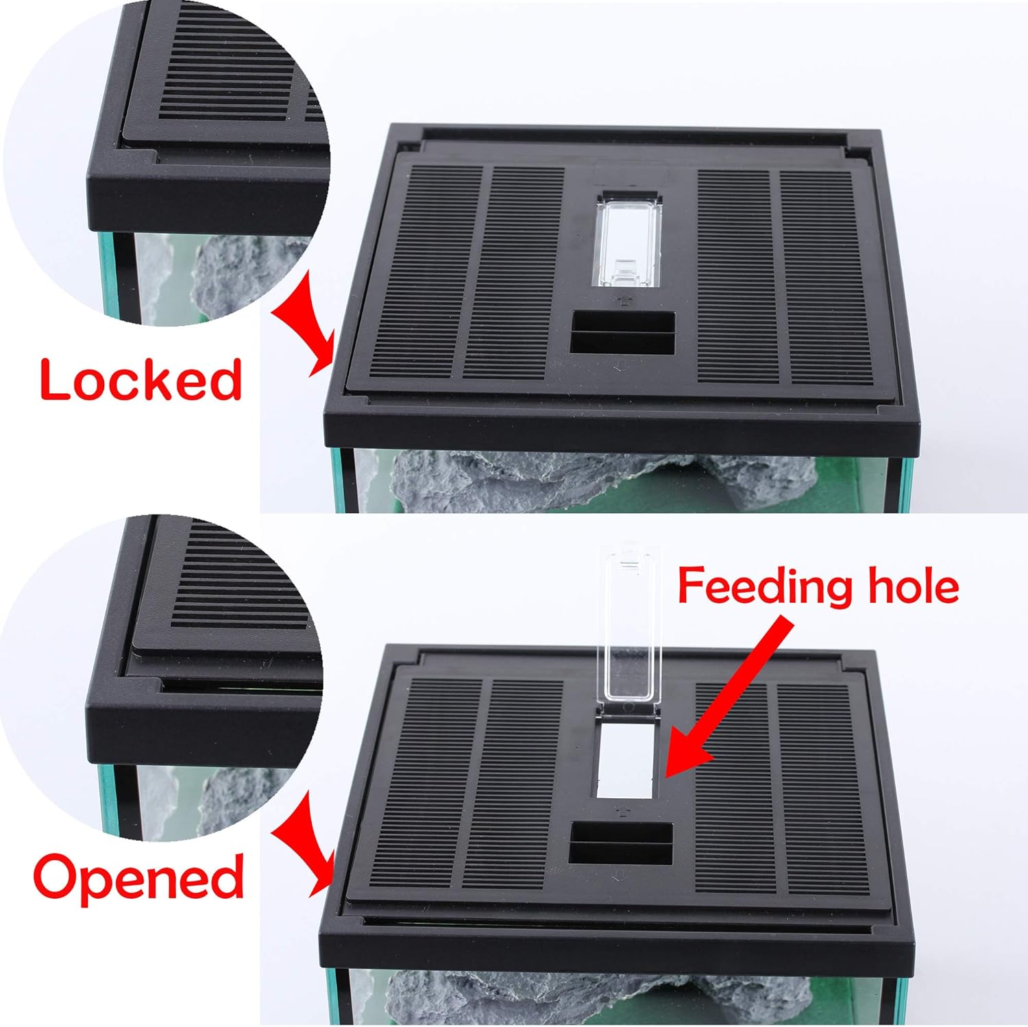 crapelles Glass Lizard Tank, Spider Box Kit, 7.8x7.8x5.9'' Tarantula Feeder Insects Beetle Habitat, Amphibians Terrarium for Small Pet, with Washable Mat, Resin Rock Shape Hideout, Artificial Flower