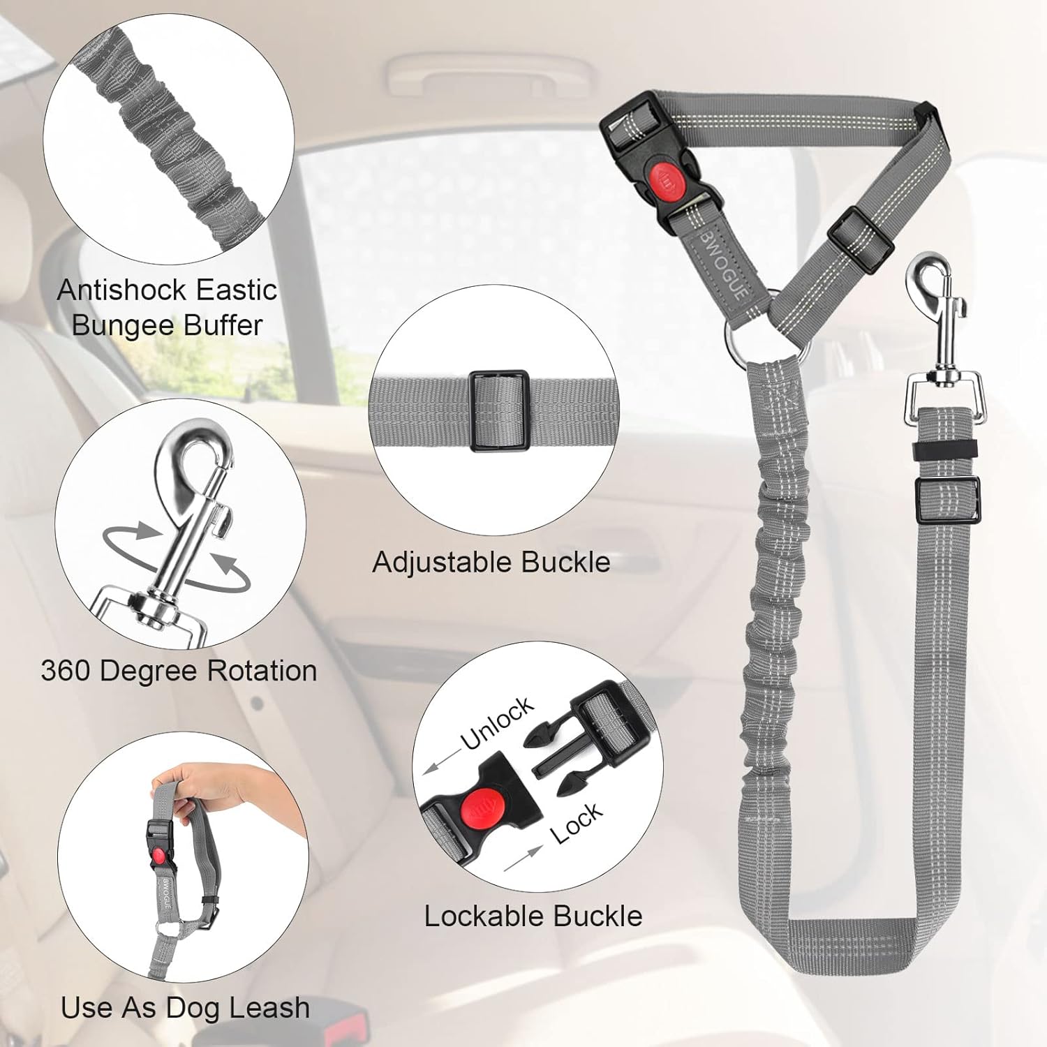 - CONVENIENT: The tangle-free nylon straps quickly and easily attaches to vehicle headrests. It can be used in all models of Vehicle which has headrest. The strap circle which hanging on the headrest is connected by a lockable quick release buckle. The lockable buckle prevents the circle from opening and makes sure your pet safe.Safety strap is easily removed making it the perfect leash for your vehicle!
