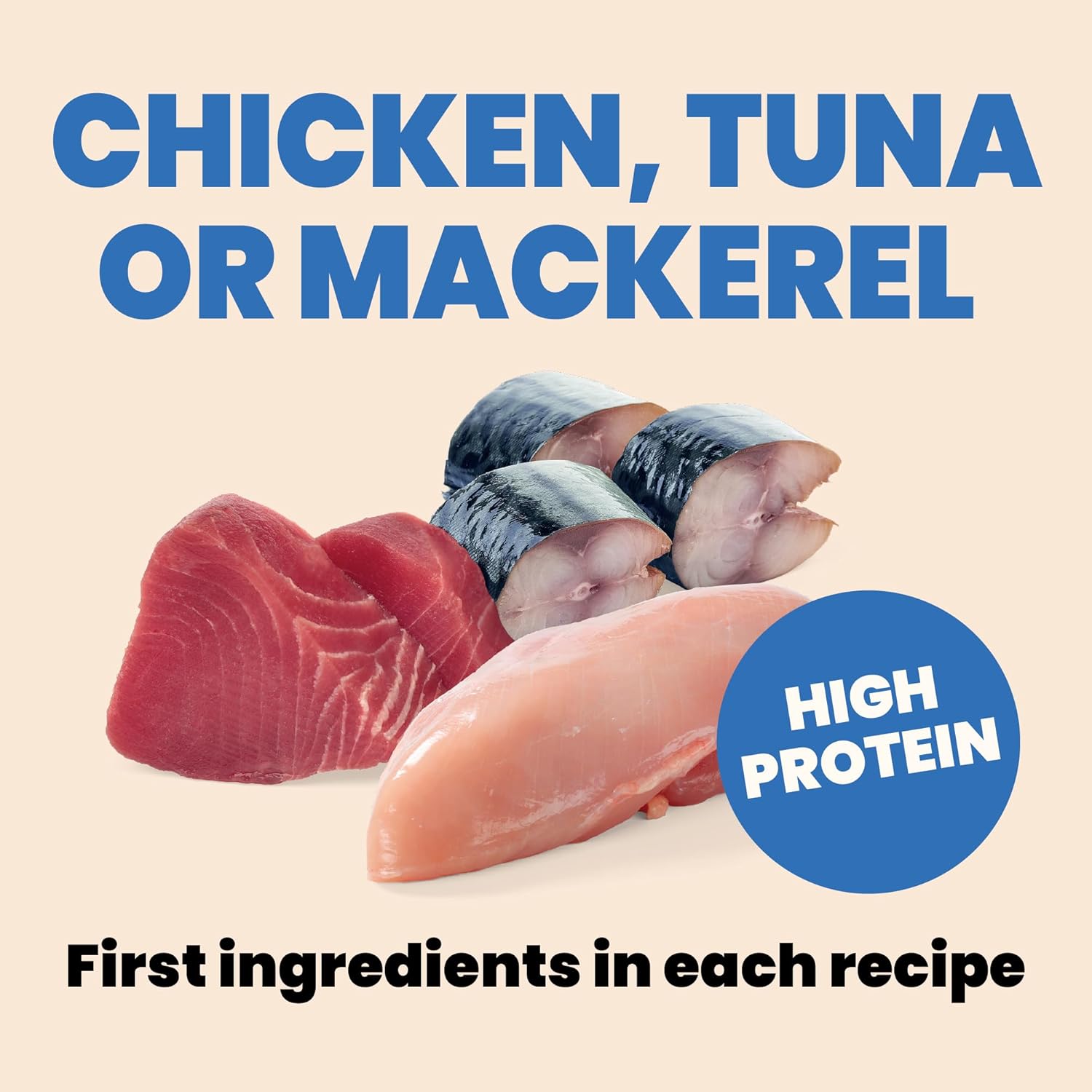 - CATS LOVE THE TASTE! Picky eaters will enjoy this high-protein recipe, made with meat/fish as first ingredient with Chicken & Duck, Tuna & Sardines, Chicken & Green Beans, and Mackerel & Sweet Potatoes. Grain-free delicious for happy cats and empty bowls