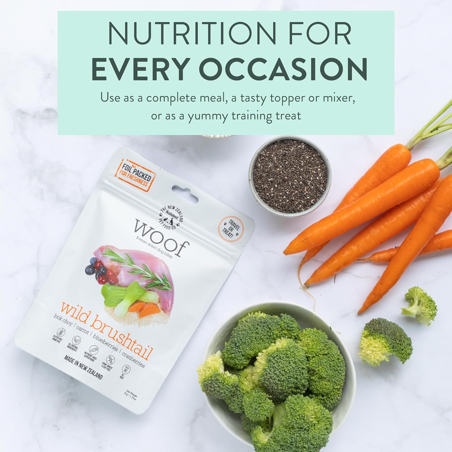Woof Freeze Dried Dog Food - Wild Brushtail, High Protein, Complete Diet, Dog Treats, All Life Stages - 1.76 oz