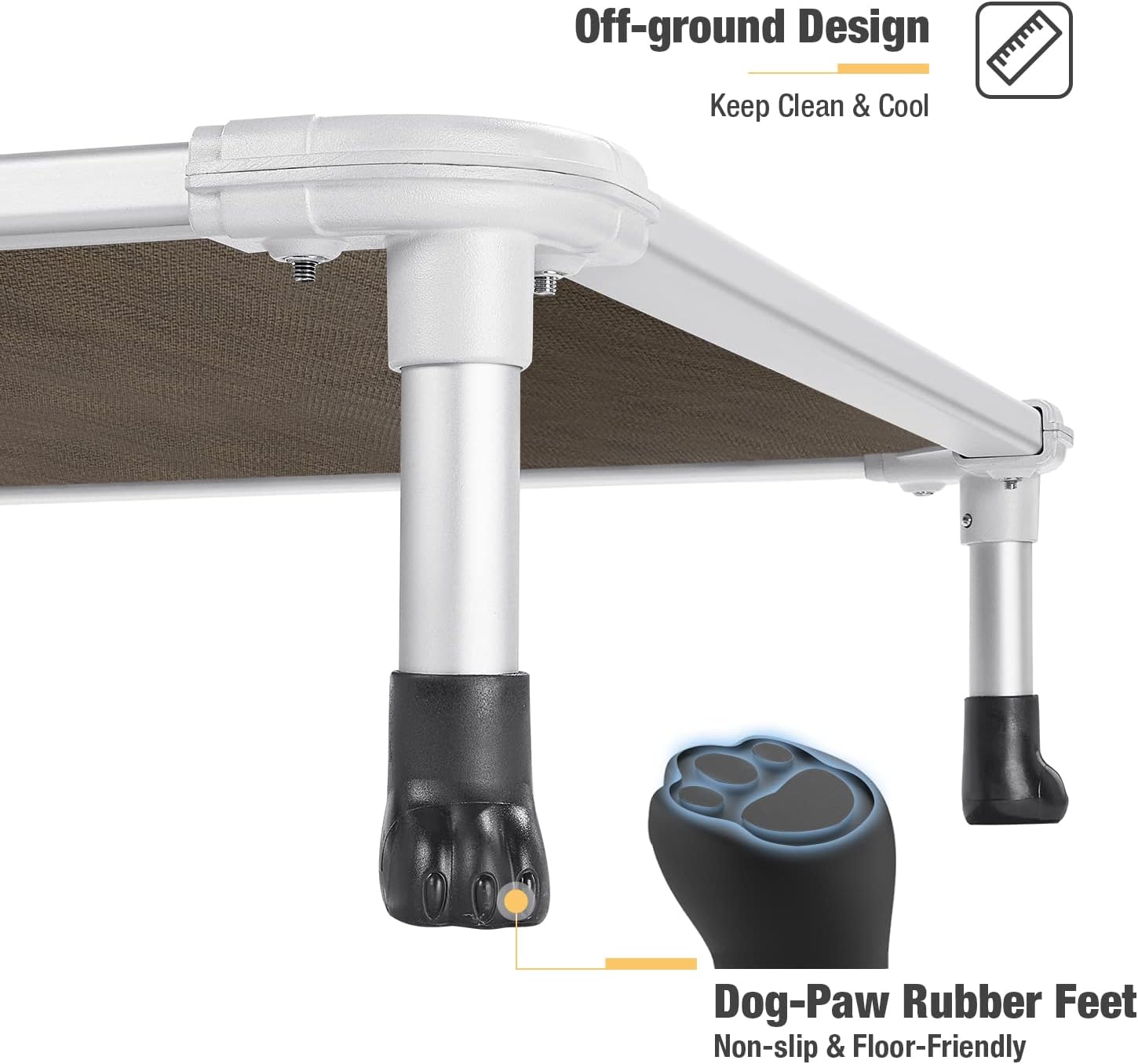 Veehoo Chew Proof Elevated Dog Bed - Cooling Raised Pet Cot - Silver Aluminum Frame and Durable Textilene Mesh Fabric, Unique Designed No-Slip Feet for Indoor or Outdoor Use, Brown, X-Large, CWC2003