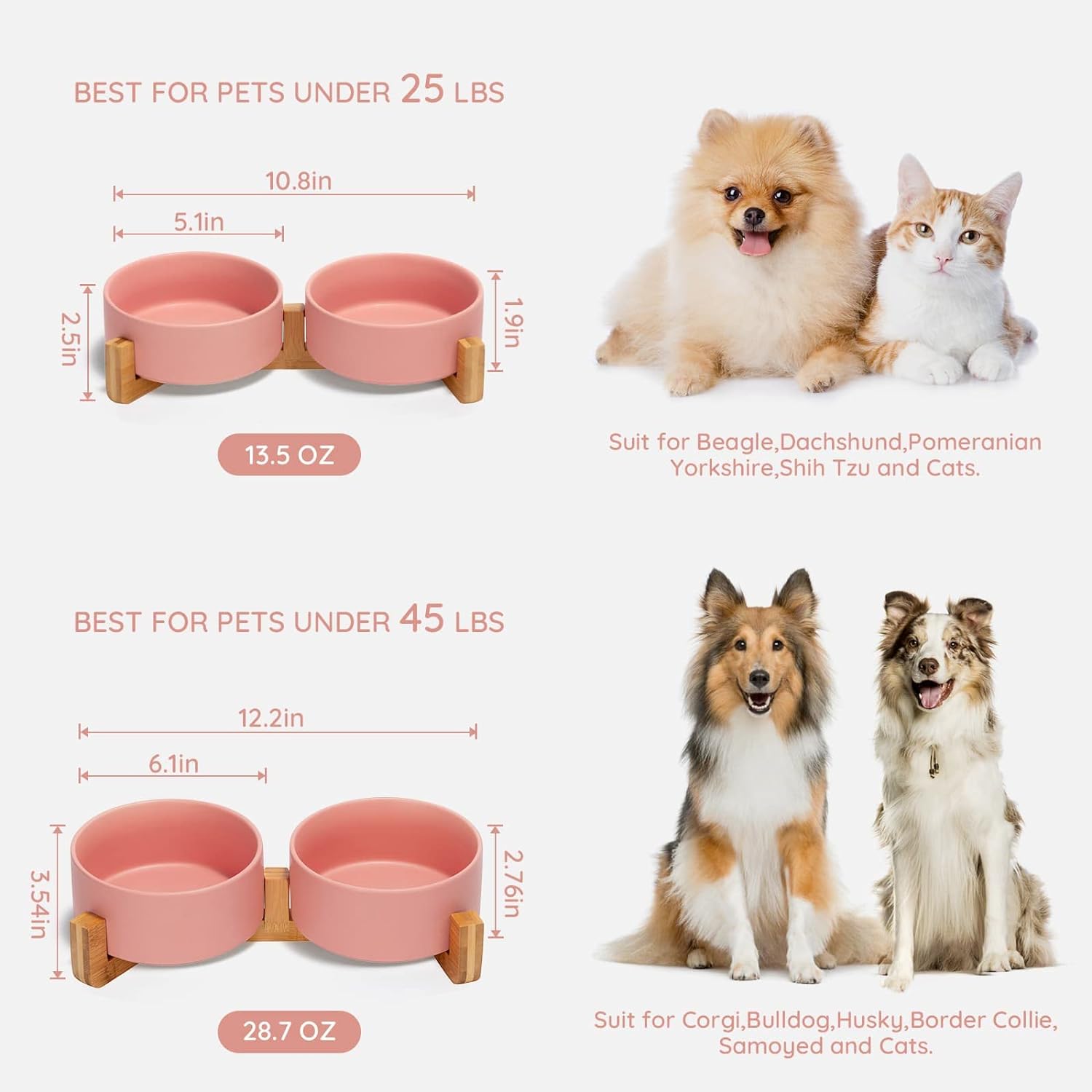 - Capacity:1.7 cups(400 ml, 13.5 Fluid Ounces) capacity of each single bowl, perfect for different breeds of kittens and adult cats, as well as small dogs