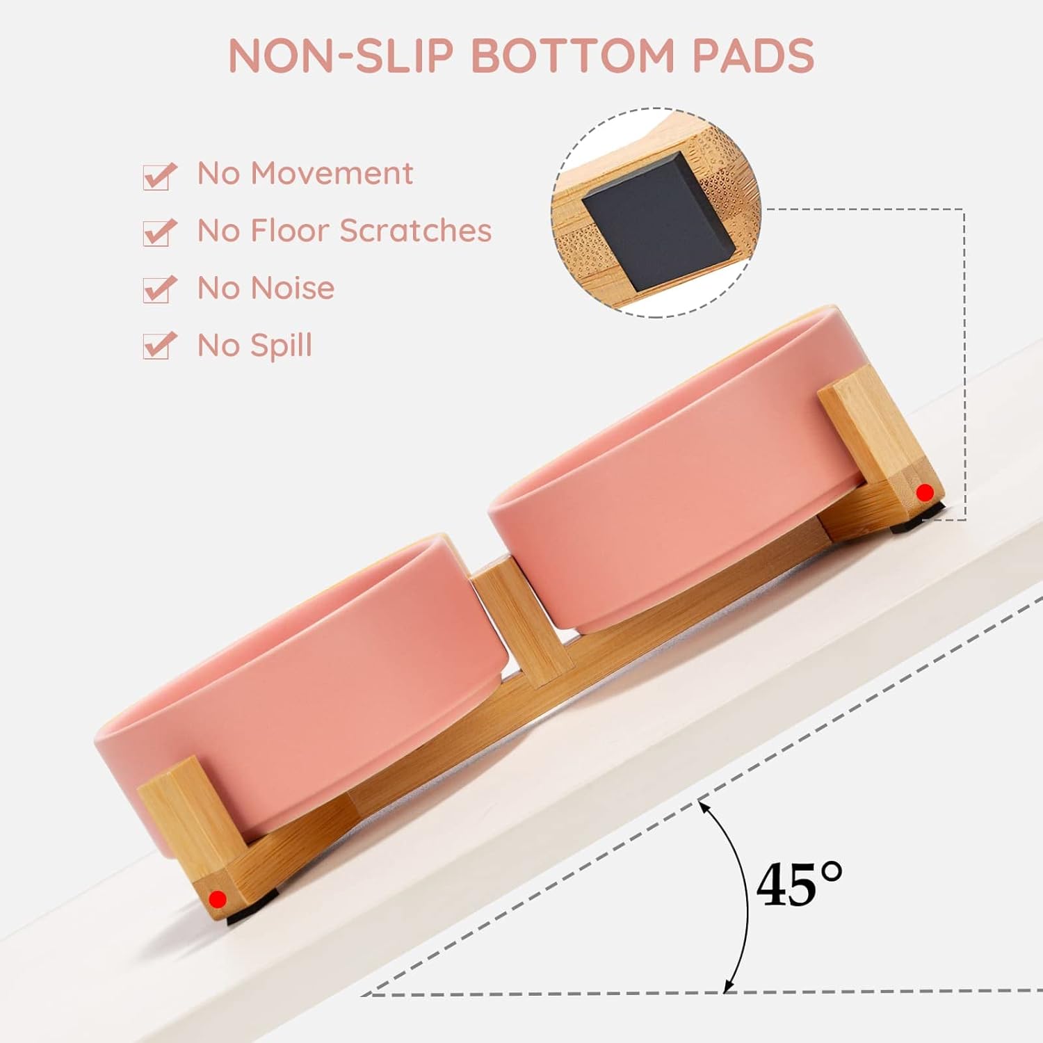 - Natural Wooden Stand:Unique wooden stand can effectively prevent food from spilling and keep the floor clean and tidy. Non-Slip bowl base, making it easy to pick up and put down