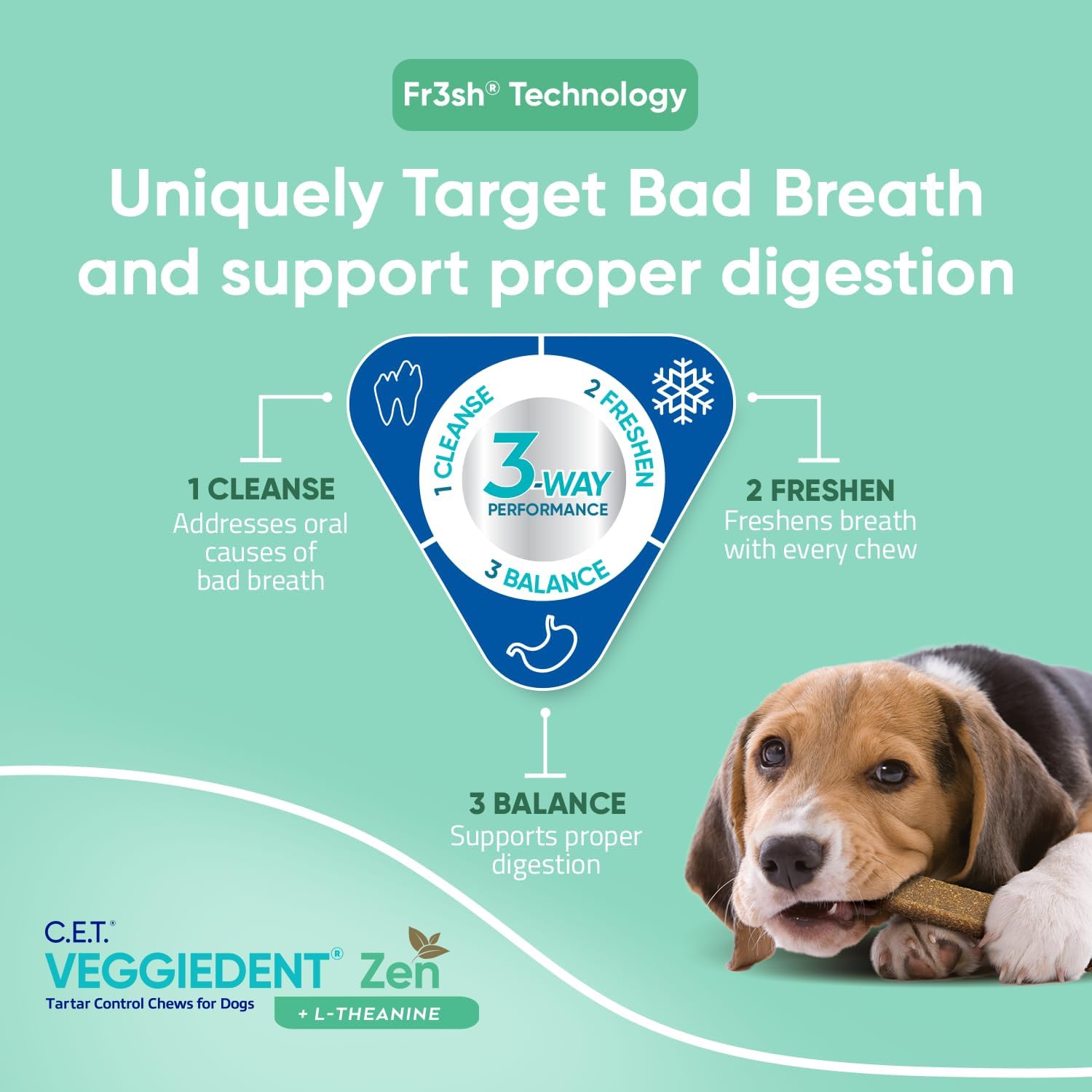 - FORMULATED WITH L-THEANINE: which is also found in green tea L-theanine used in VEGGIEDENT Zen Tartar Control Chews for Dogs comes from Suntheanine, which contains a pure form of L-theanine. Suntheanine is a registered trademark of Taiyo International.
