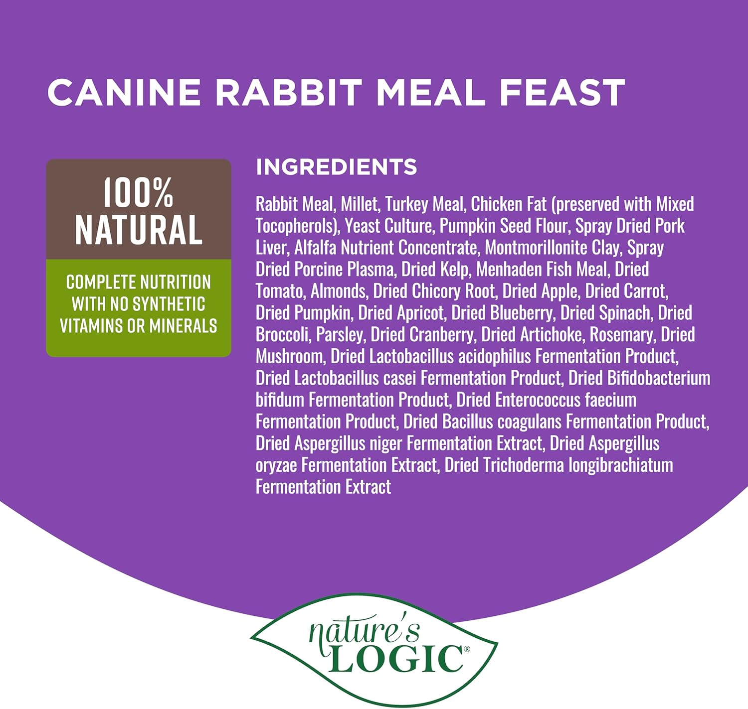 NATURE'S LOGIC Dry Dog Food - 100% Natural - No Synthetics - for All Ages, Sizes, Breeds - Free from Common Allergens, High Protein - Rabbit Meal Feast, 13lbs