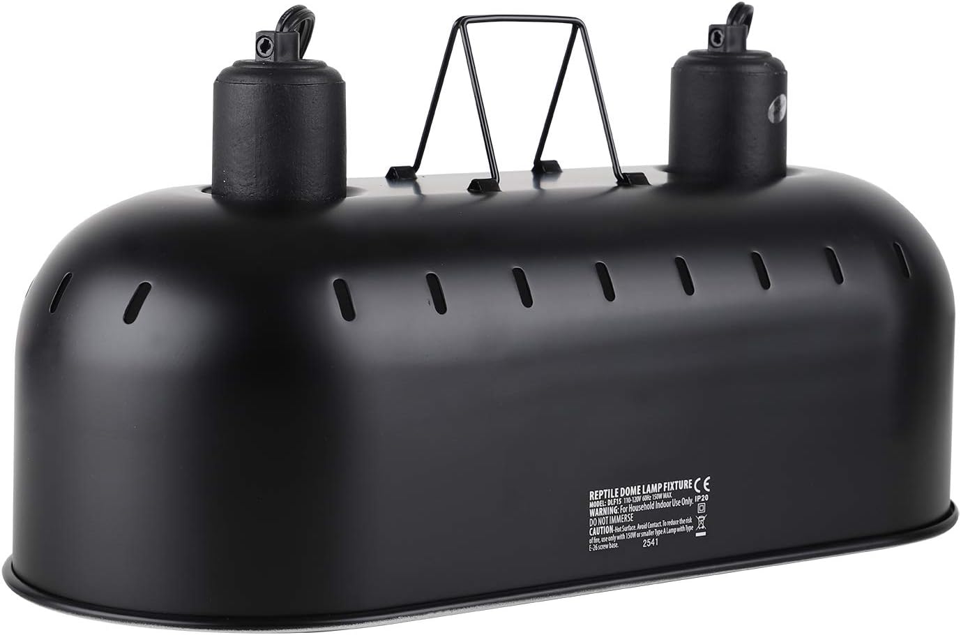 DXOPHIEX 15inch Dual Reptile Light Fixture, Max 150W Dual Reptile Heat Lamp with Separate Switches, Double Dome Lamp UVB Light Fixture for Bearded Dragon, Turtles, Snake and Lizard Terrarium