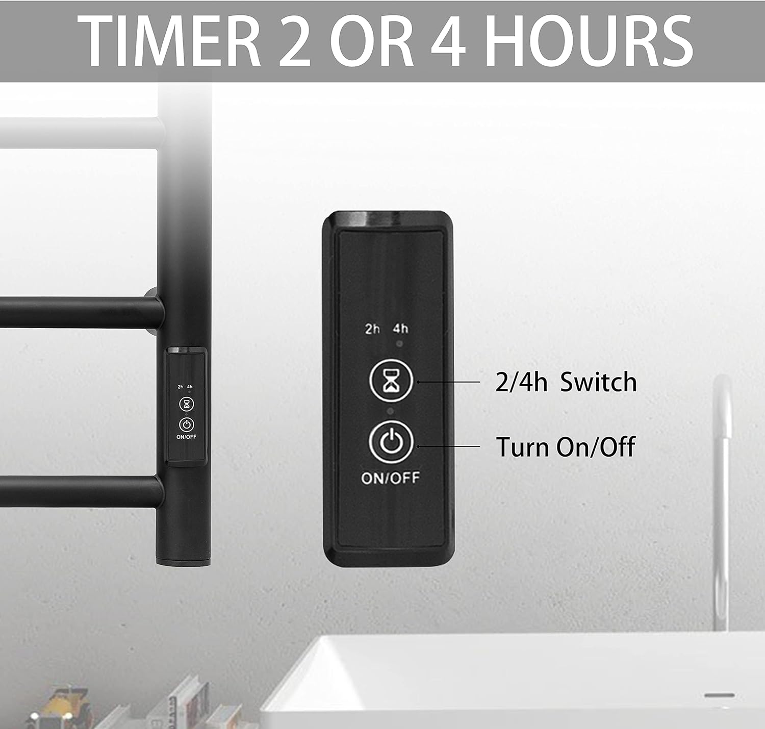 - Timer & LED Indicators: The towel warmer has a built-in timer of 2h or 4h with a visual LED indicator. Press the 2 or 4 hour buttons will dry your towels, and then it will automatically shut off itself when time is up.