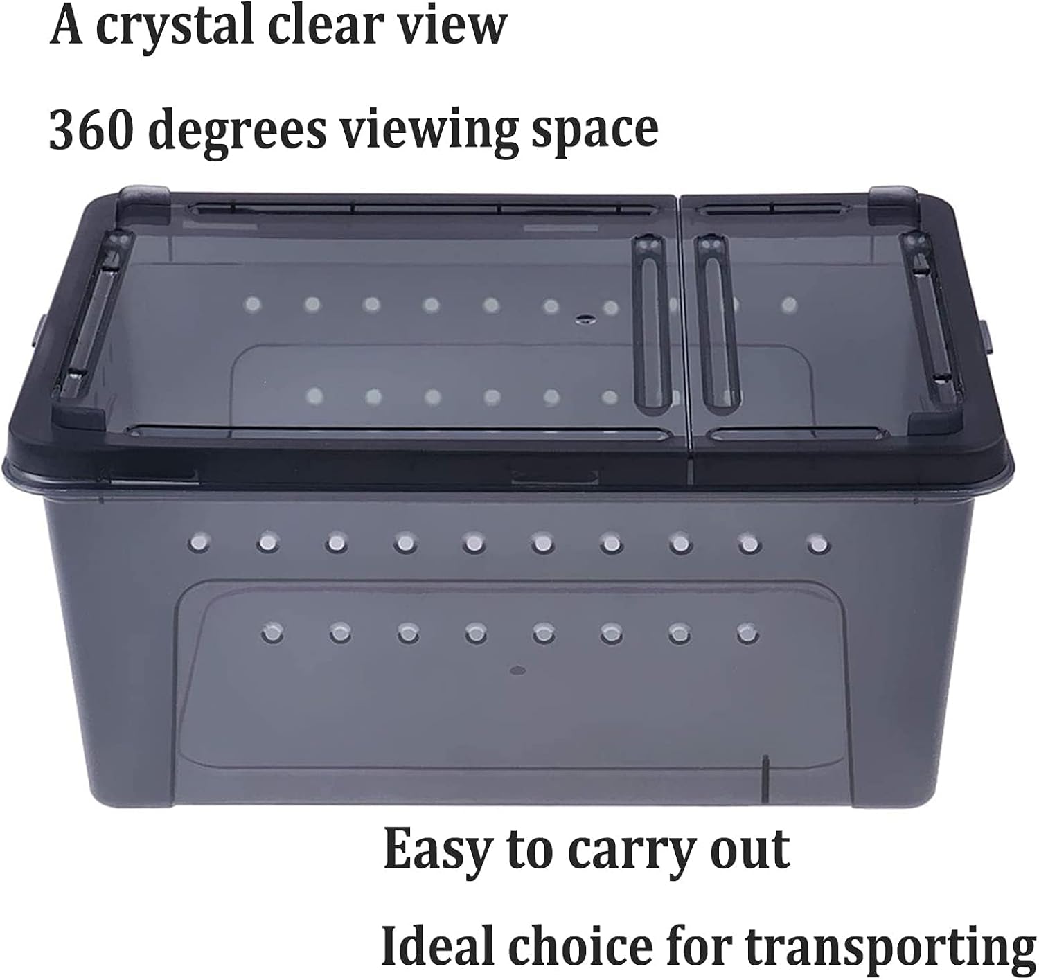 - PRACTICAL DESIGN: Designed with multiple vents, the reptile carrier has a stable ventilation system, which can keep the air circulation in the snake cage and let the animals breathe fresh air. After covering the lid, press the four corners firmly to make sure they close tightly and prevent pets from escaping