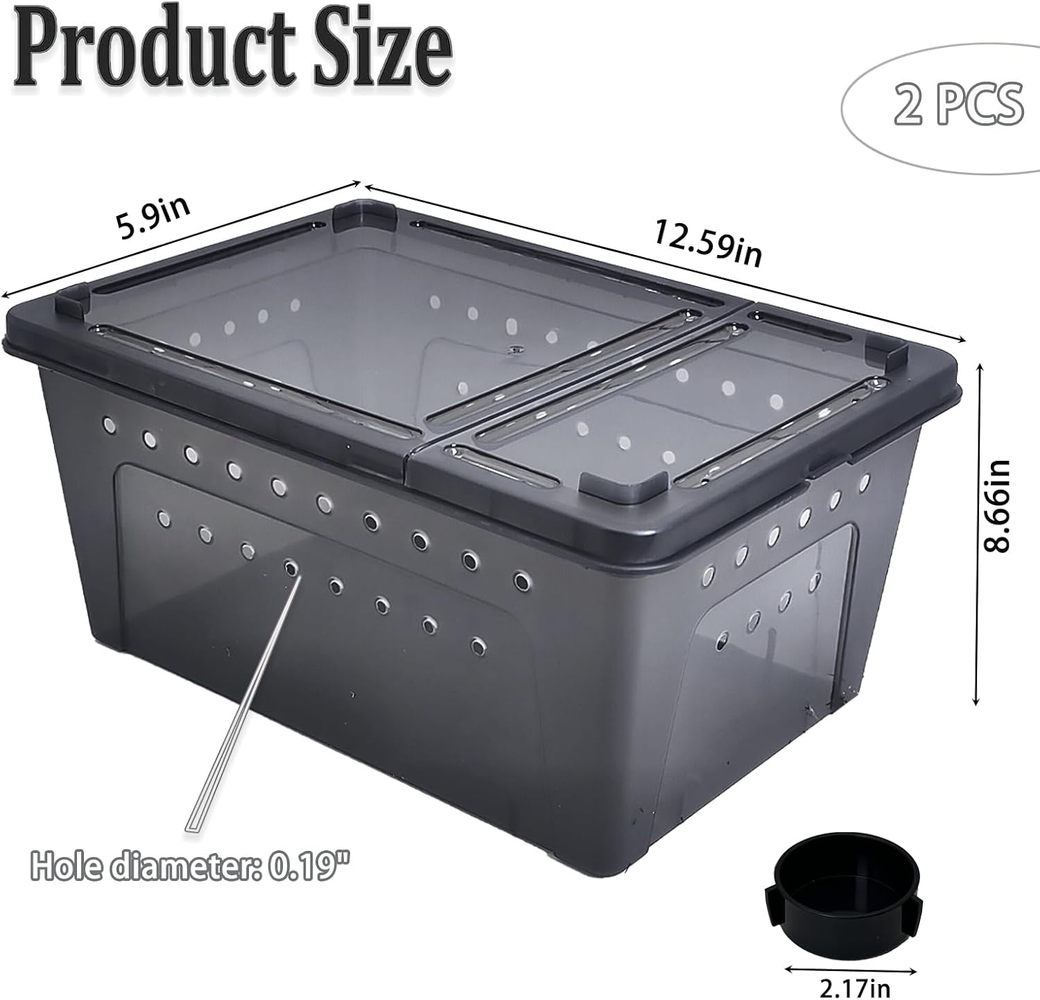 PINVNBY Reptile Enclosure Terrarium 2-Pack - 12.6"x8.7"x5.9" Multi-Purpose Transparent Plastic Habitat Cage for Gecko Scorpion Spider Snake Breeding Feeding & Cricket Keeper with Ventilated Lid, Black