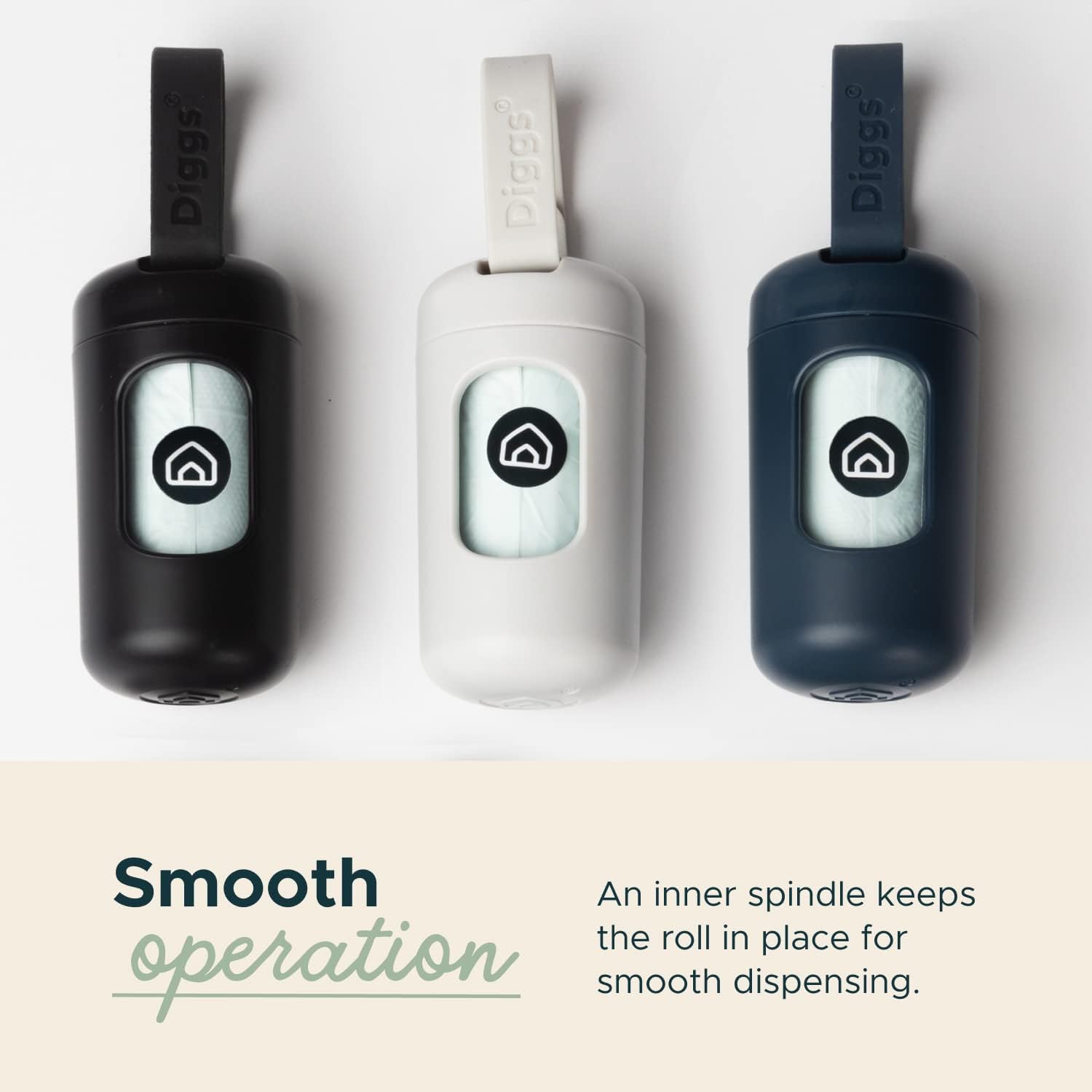 - UPGRADE YOUR WALK: Designed to work with DIGGS Poop Bags and most standard waste bags, this sturdy dog bag dispenser easily attaches to your leash for hassle-free walks. The patent-pending design keeps bags accessible, so you can quickly clean up and get back to enjoying time with your pup.