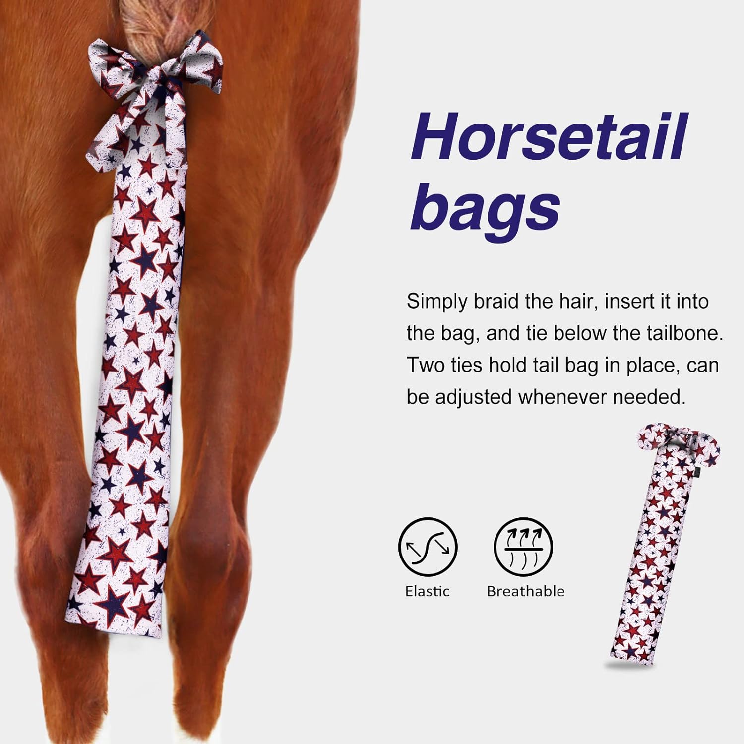Harrison Howard Stretchy Tail Bag Breathable Horse Tail Guard Slip on Design Protect Horse Tail 2 Strand Closure Straps Keep Tail Clean & Protected 22" L Length Makes Grooming Easy-Dream Star