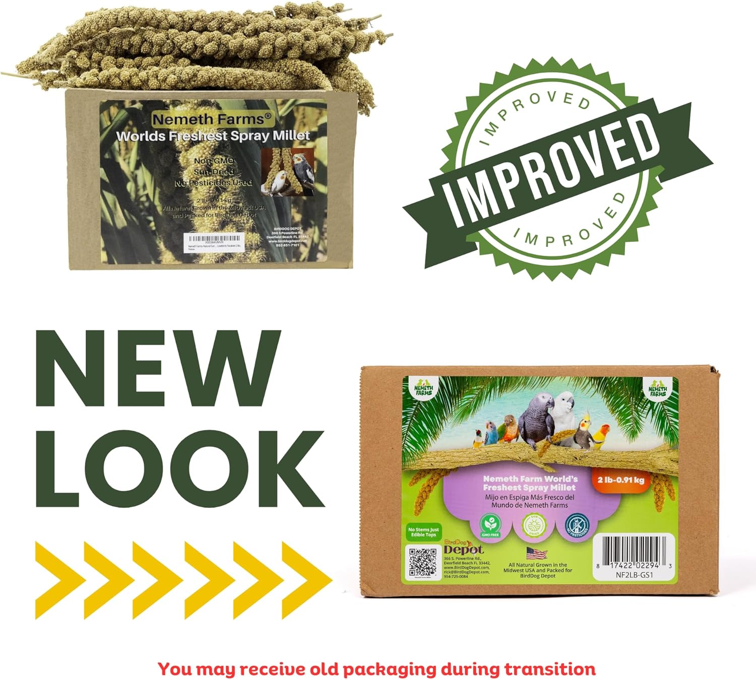 Nemeth Farms–Natural Sun Dried Millet Spray for Pet Birds–Bulk Parrot Seed Treats and Parrot Food–Natural Non GMO Millet Spray–Cockatiels Lovebirds Parakeet 2 lbs.