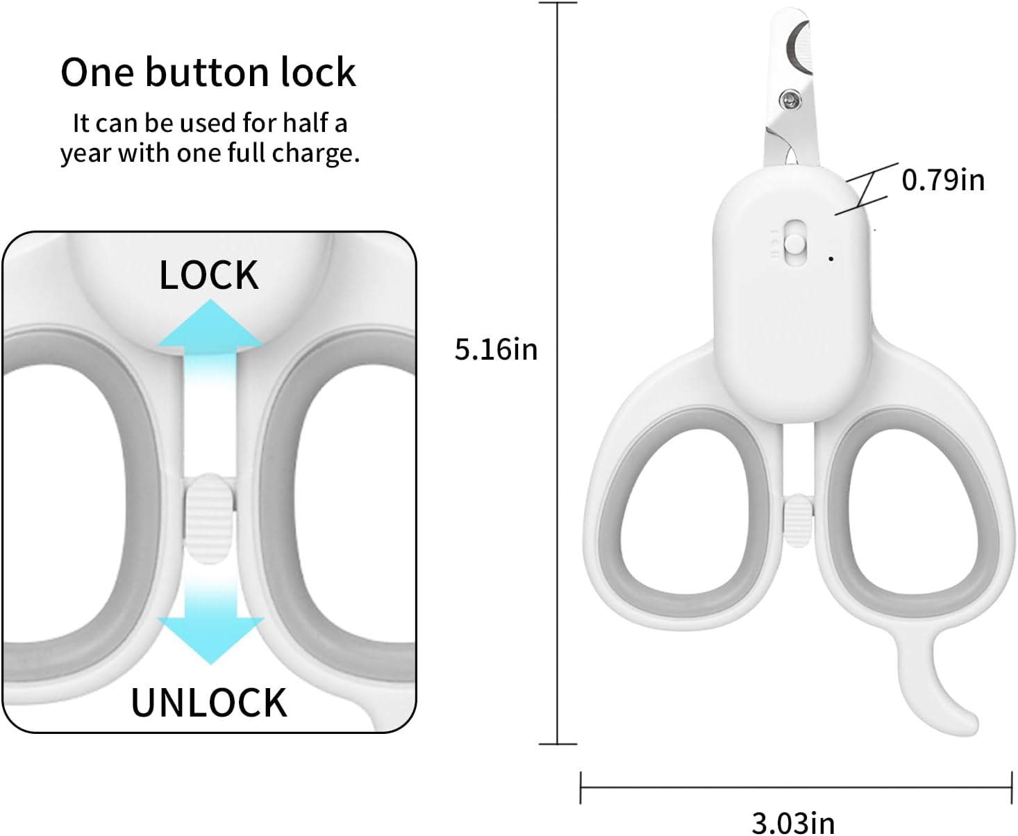 - Bright LED Light: Equipped with LED light at the end of this unique cat nail clipper. The light illuminates your pet's nails, allowing you to quickly and easily find where to cut, preventing damage to the blood vessels on your pet's nails