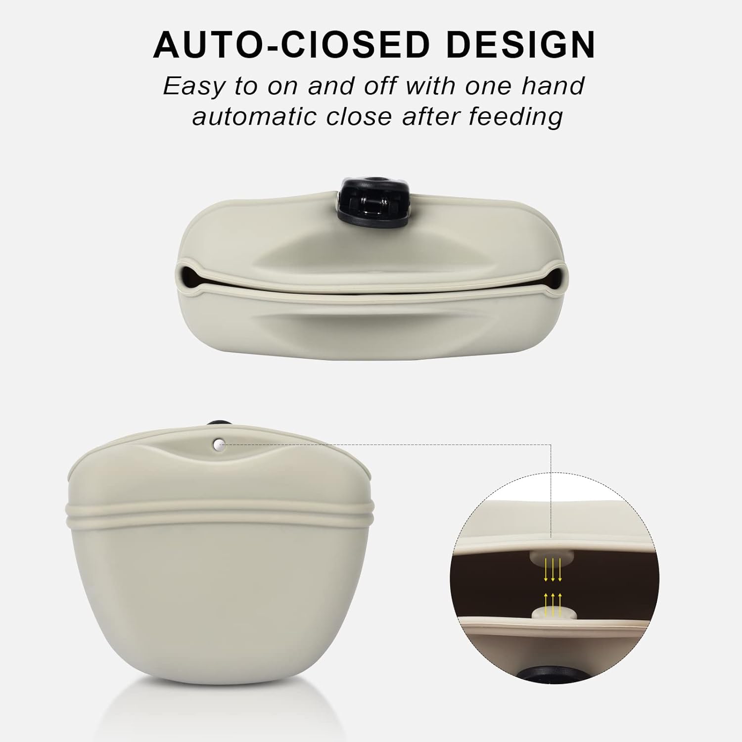 - 🐕Silicone Dog Treat Pouch🐕 - The silicone dog treat pouch is made of food grade silicone,it can contact dry and wet food directly,safe and healthy. It’s easy to on and off with one hand, automatic close after feeding.With upgrated clip,It is easy to carry,not easy to fall off.Dish washer safe and easy to clean,The large opening design and soft silicone material make the pet pouch easy to reverse to clean the inner easily and thoroughly.