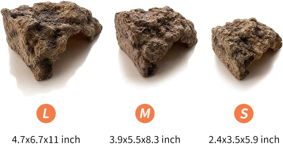 - The Large Size Cave has a suitable entrance with 5.9 inch wide and 2.8 inch height. The interior is spacious enough and smooth, creates a better natural environment for small and medium reptiles like corn snakes, juvenile bearded dragon, leopard gecko, box turtles.