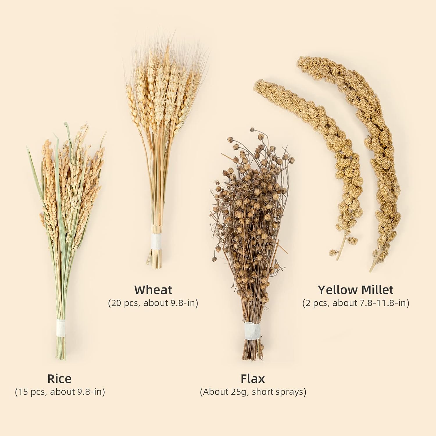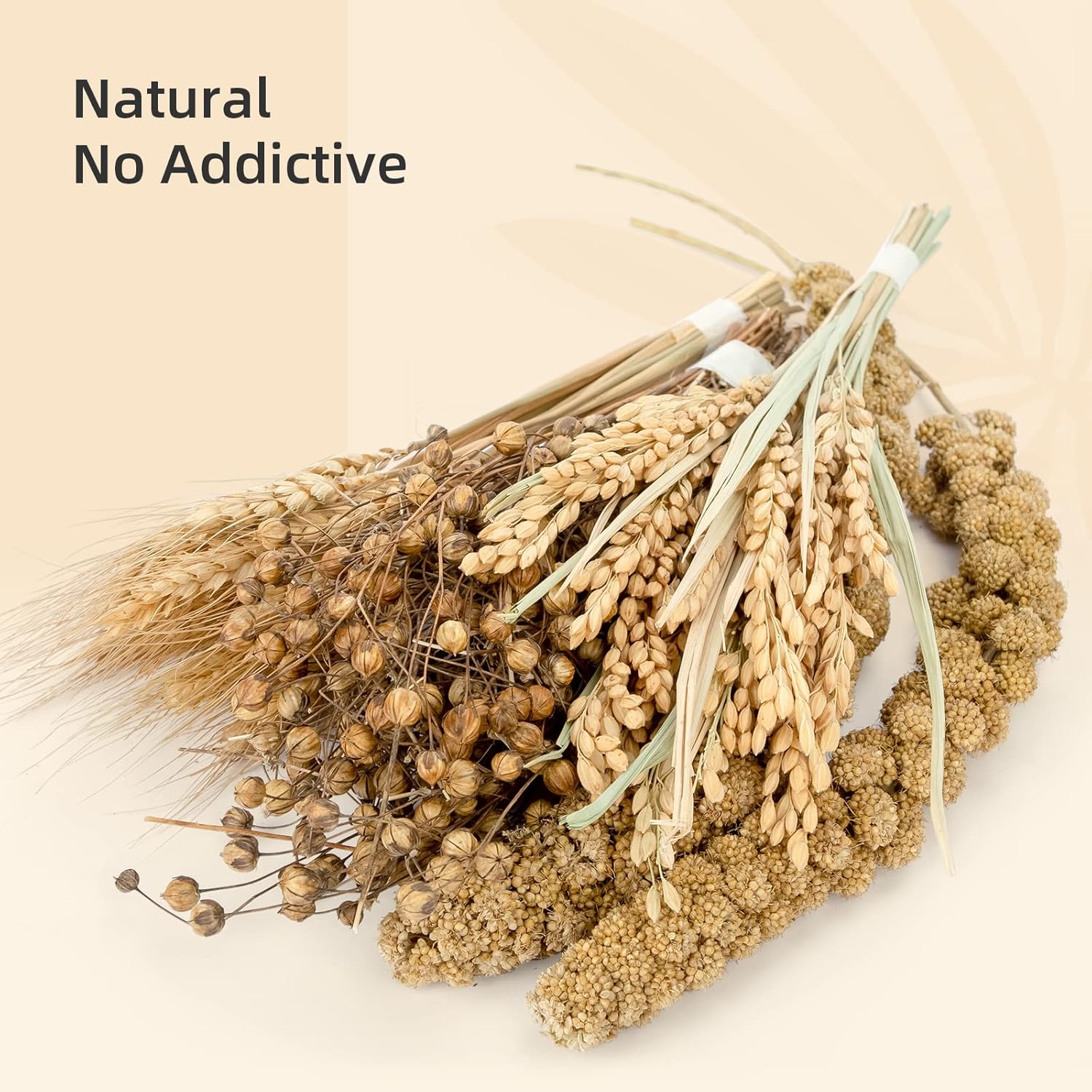 - Safe Materials & More Experience: Capacity: 5.9 OZ (ca. 170g). We are always want to find safe and happy stuff for our pets, these dry varieties have been repeatedly researched by pet experts to pick out the safe flowers that children love, such as Wheat, Flax, Yellow Millet and etc. Not only can decorate your hamster's home, but also provide more different textures to enrich their chewing experience and be a new hamster toy.