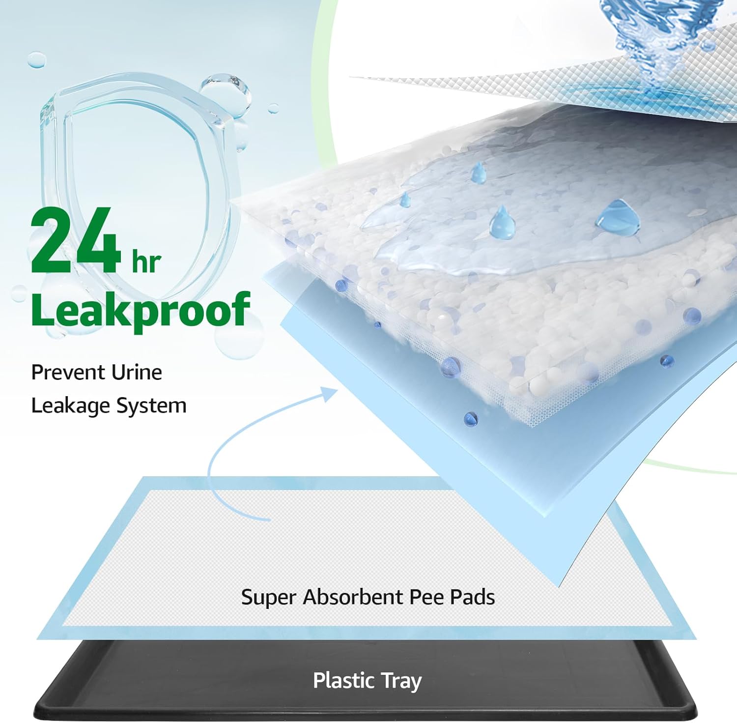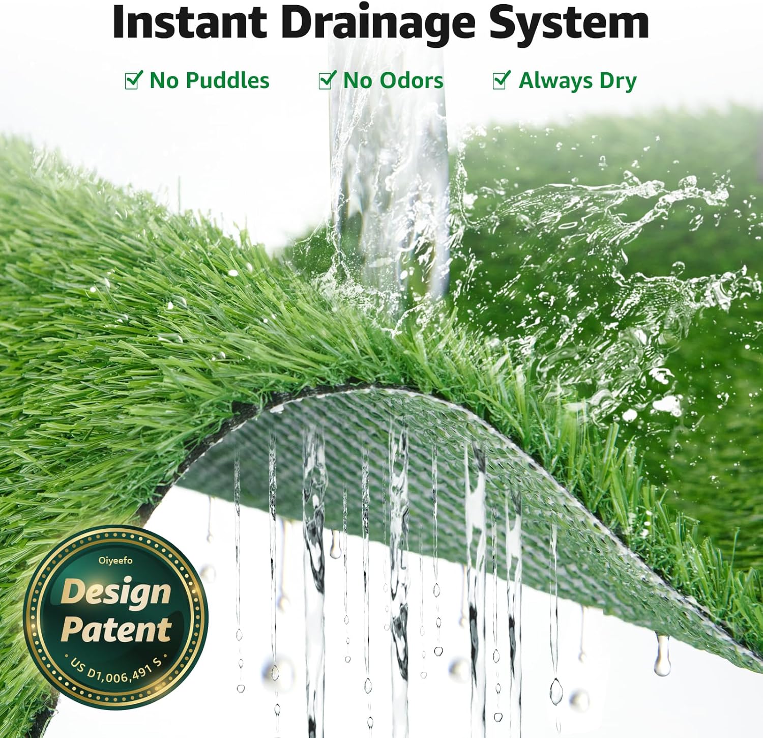 - 5 DISPOSABLE PEE PADS: The artificial grass for dogs potty come with an incredible dog pee pad solution. Advanced absorption technology from Japan,when the drainage holes get the liquids to travel downwards, Oiyeefo puppy pee pad catch the urine and absorb it quickly, so the extreme odor-causing issues can be easily curbed.