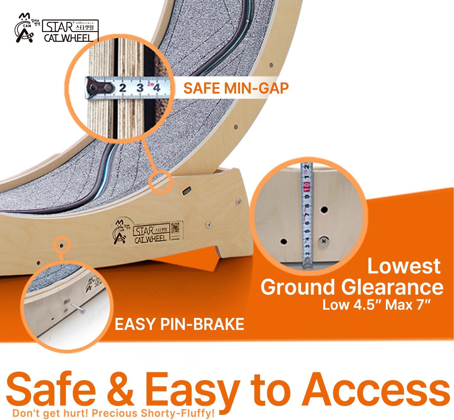 - SAFETY FIRST: Our first priority when we make pet toys is safety. Pet toys must not be harmful to our pets. We have studied and tried many ways how to improve our pet toys' safety. It is very important to minimize gaps between a frame and a wheel and lowest ground clearance in safety. Also, our pin-brake system helps owners prevent unexpected accidents.