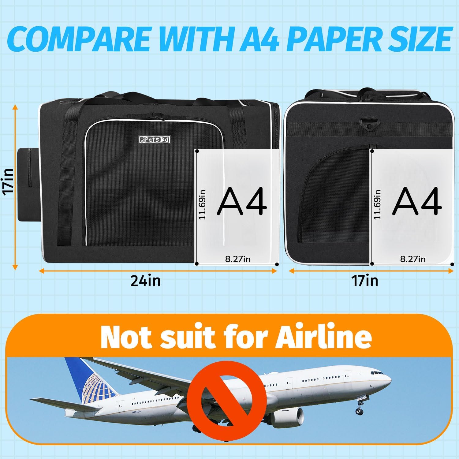 - 【EXTRA LARGE SPACE 】The carrier size:24"x17"x17", Suitable for pets up to 55 pounds. perfect for a large cat or several small cats.