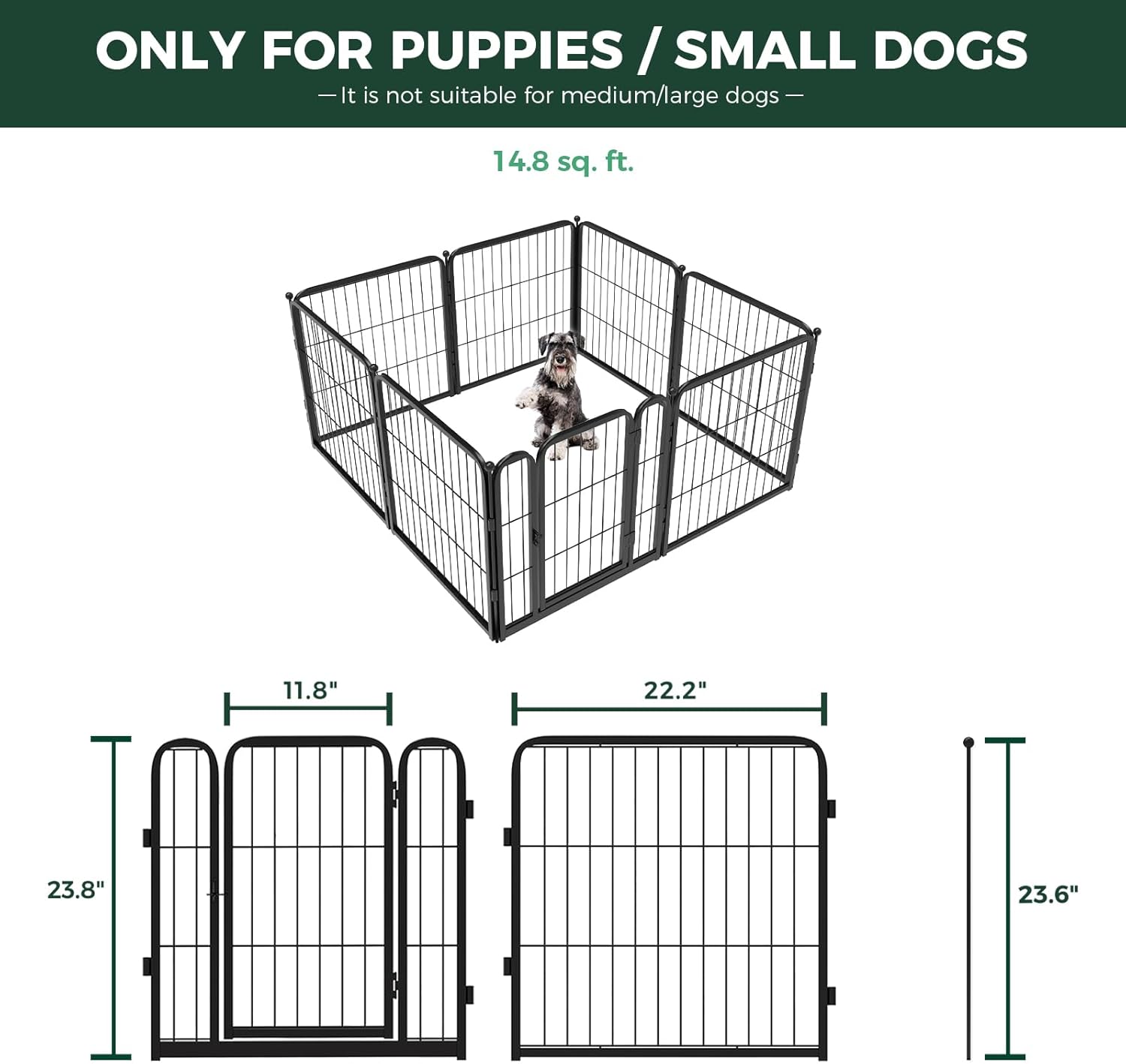 FXW Homeplus Unleashed Indoor Dog Playpen - Stress-Free and Safe Play, Heavy Duty 24 Inch 8 Wire Panels Dog Pen for Puppy and Small Dogs, Black│Patented
