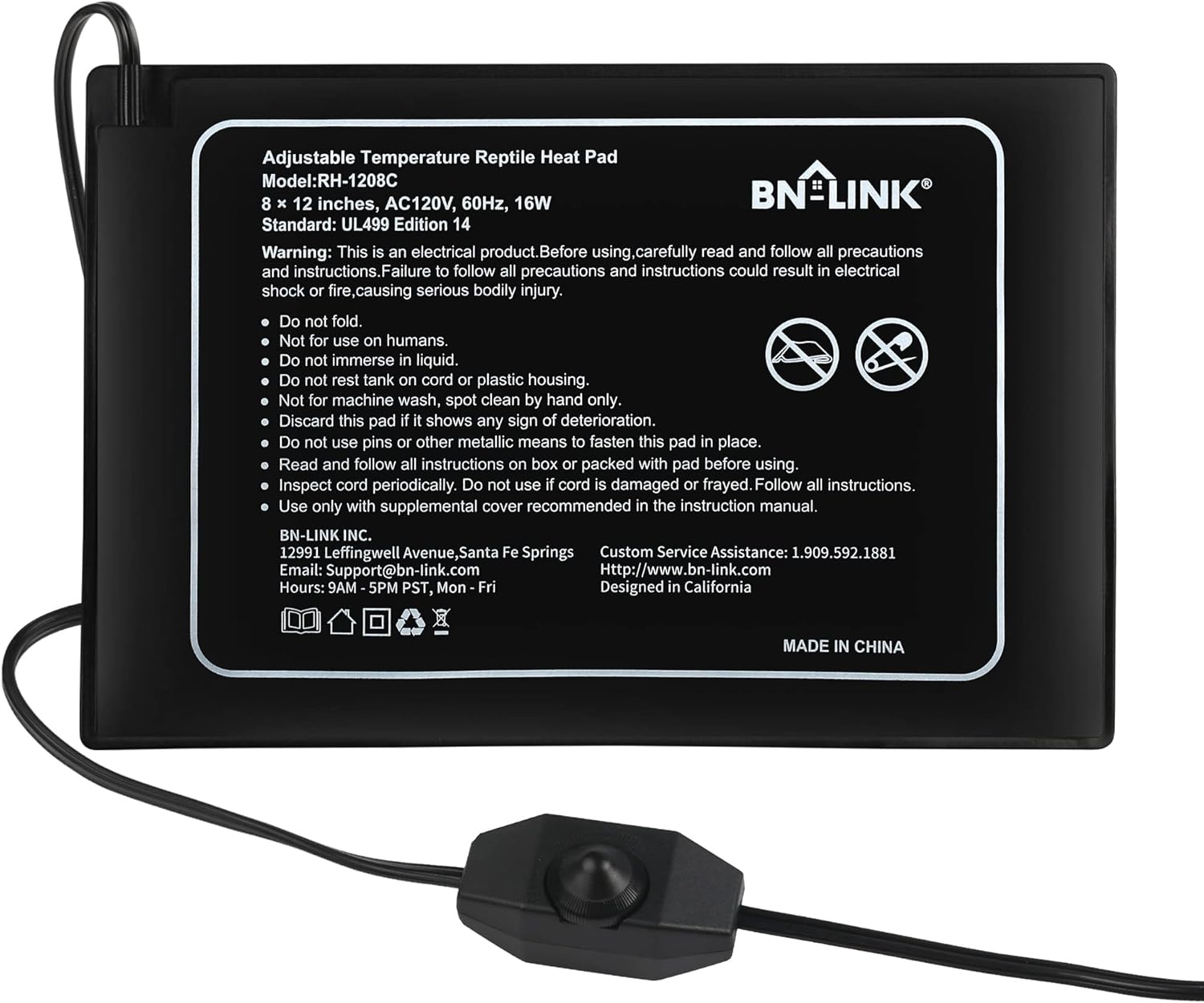 - GREAT UTILITY: The BN-LINK Heating Pad for Reptiles is great for keeping your reptile tank warm, but never scorched. It’s also great for amphibian, small animal, or plant terrariums.