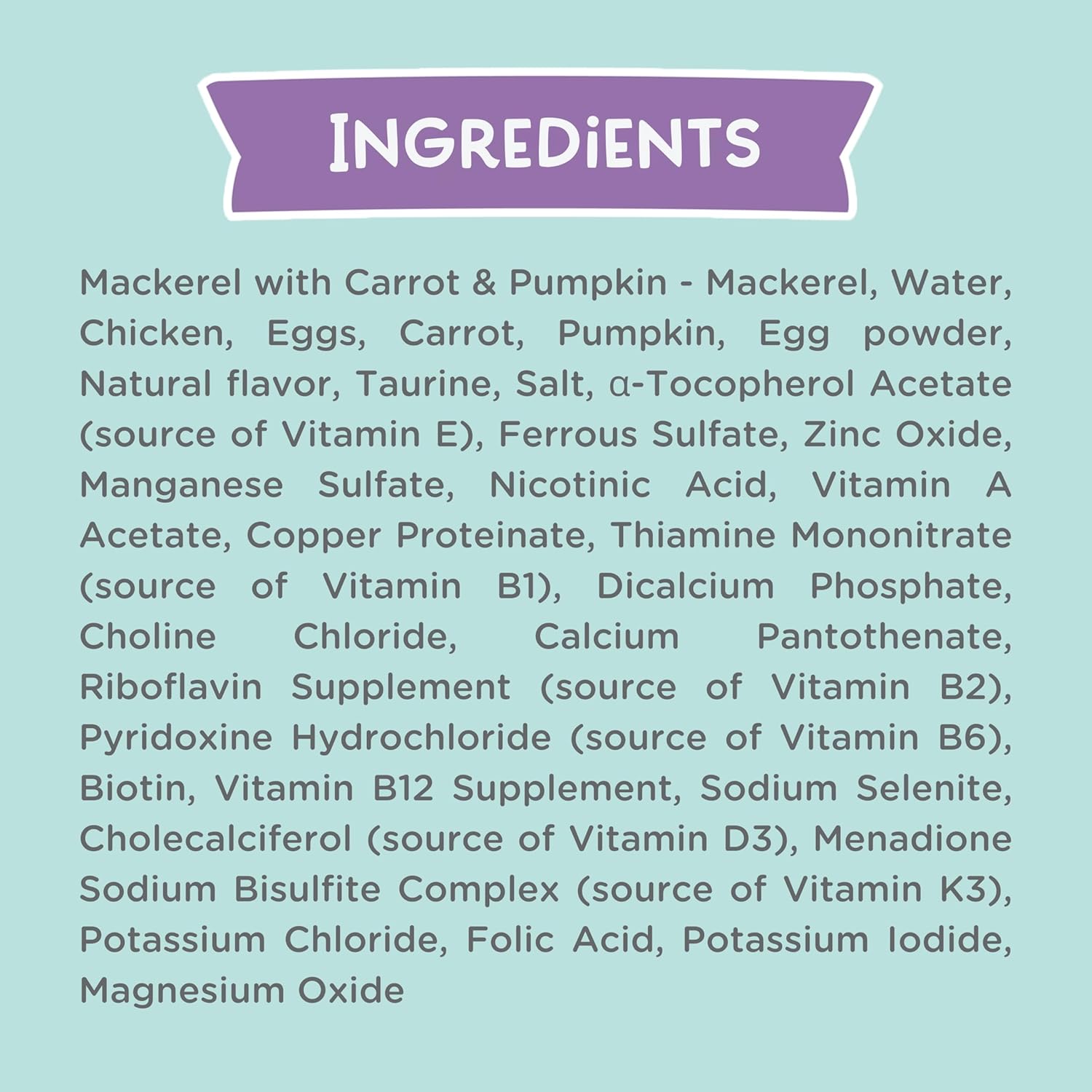 - GRAIN FREE & NON-GMO: Our pate mackerel, carrot, & pumpkin is prepared without any grains, artificial additives, or by-products, as our goal is to feed cats the way nature intended. We always source wholesome ingredients to promote optimal health and nutrition.