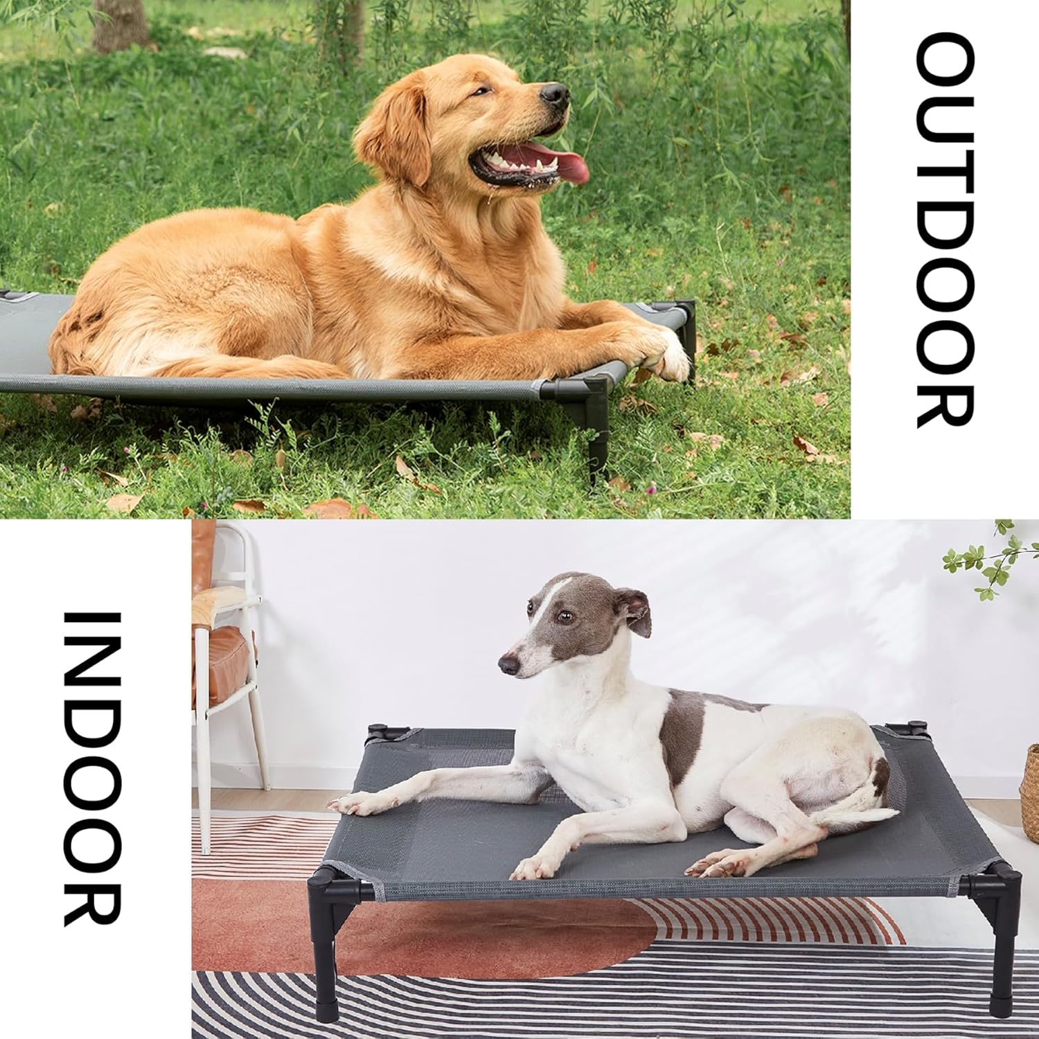 pettycare Elevated Outdoor Dog Bed - Dog Cots for Medium Pet, Heavy Duty Raised Cot Waterproof, Cooling Pets Bed with Washable Durable Teslin Mesh and Non Slip Feet, 32 Inches, Grey