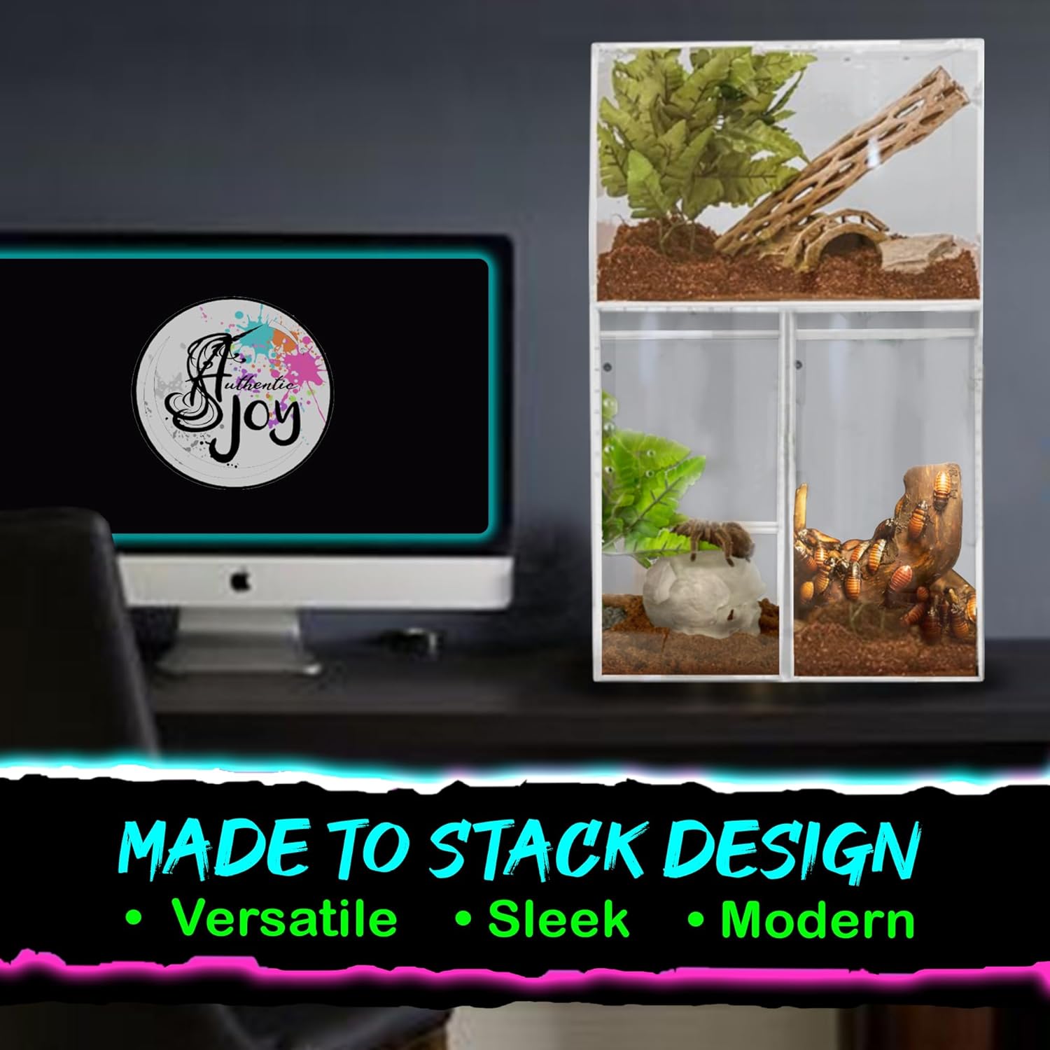 - Houses Terrestrial & Arboreal Animals: Sizing at 14”x10”x7” our critter keeper can be stacked for vertical or horizontal use which permits housing terrestrial and arboreal animals, making this an ideal adult spider terrarium. You can convert our arboreal tank into a hermit crab cage, a frog tank, snail terrarium, snake tank or a tarantula terrarium - making it a suitable home for your small pet or live insects.