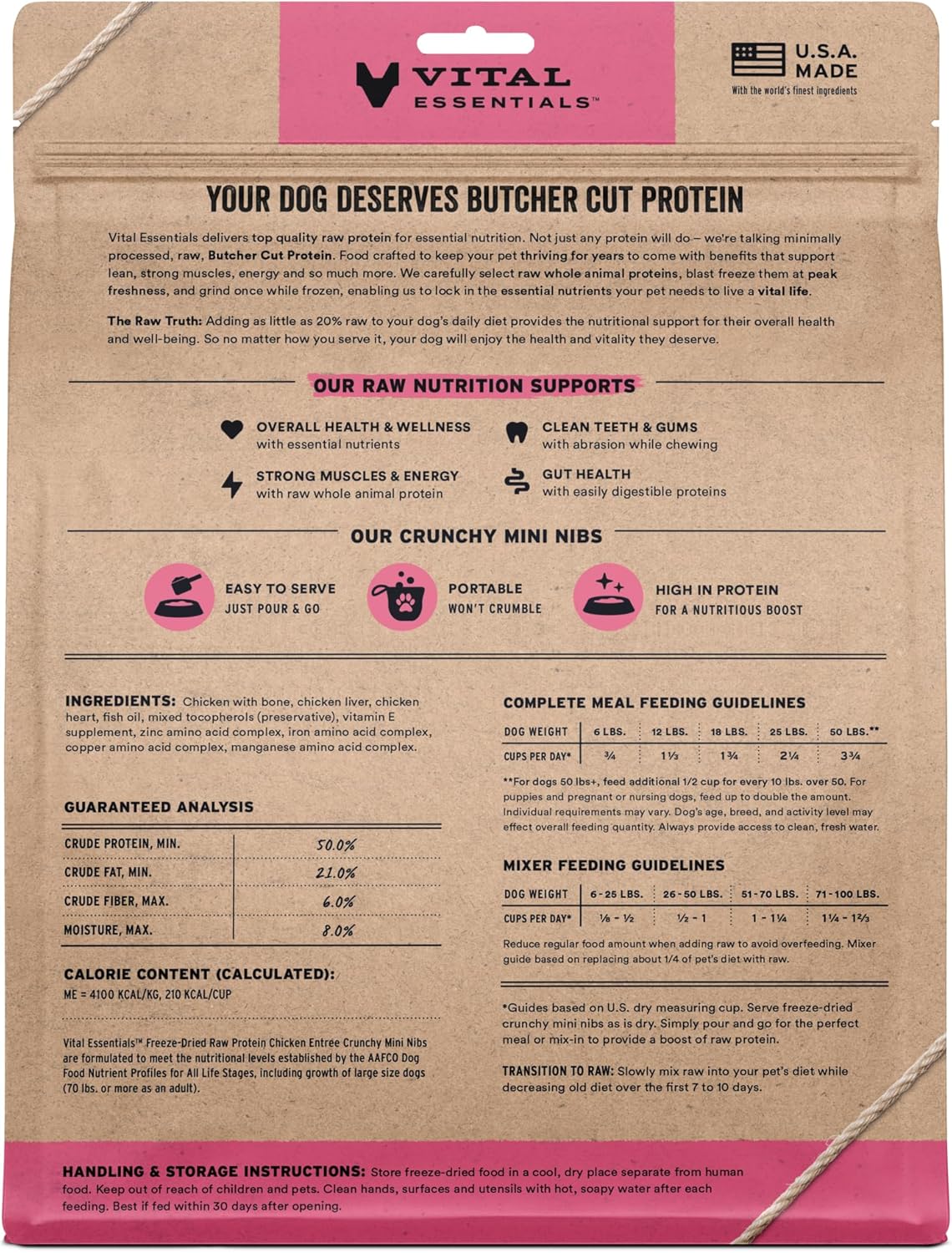 Vital Essentials Freeze-Dried Raw Chicken Meal or Mixer Dog Food Crunchy Mini Nibs, 25 oz