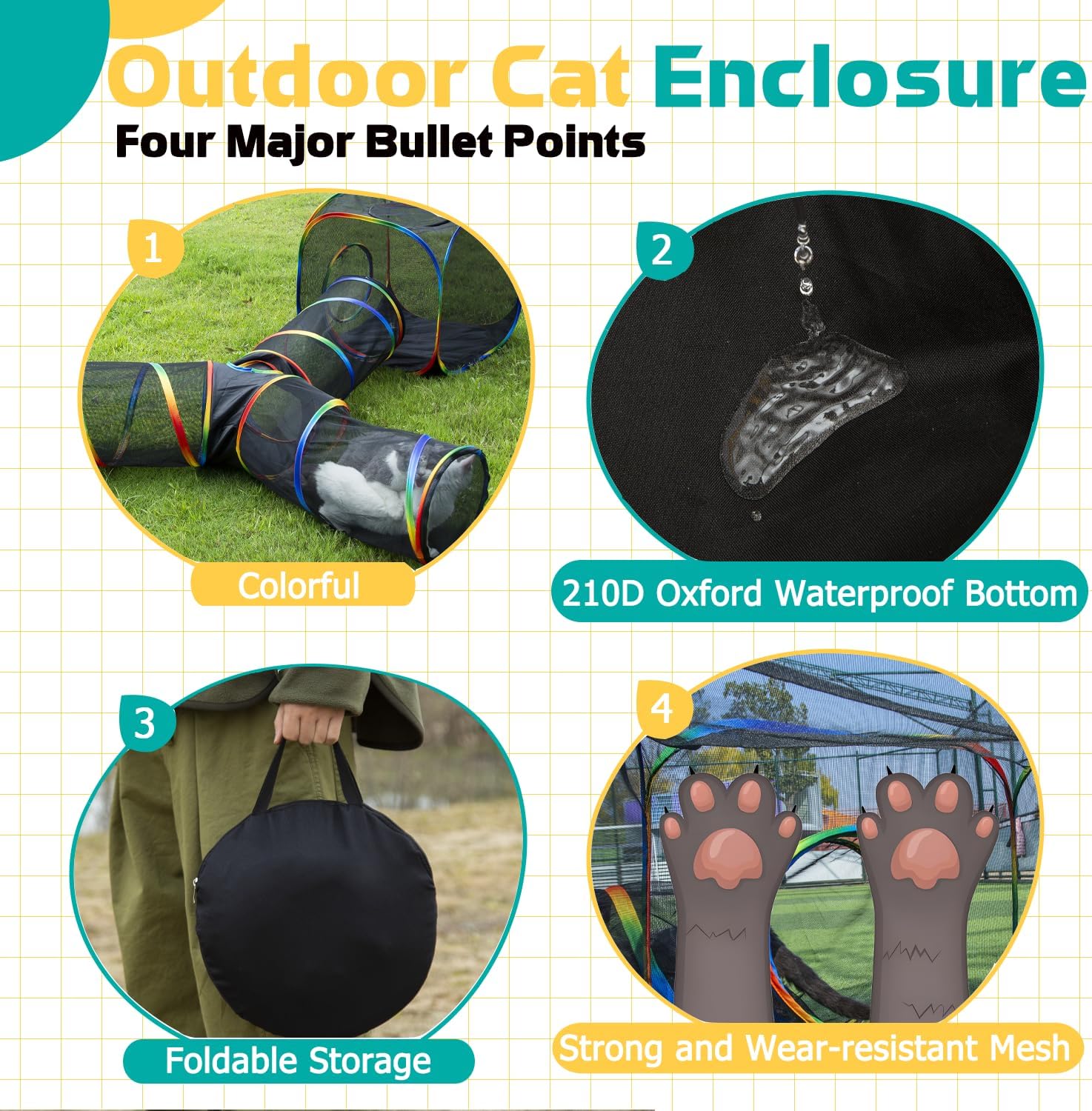 LUCKITTY Outdoor Rainbow Cat Enclosures Playground,Outside House for Indoor Cats Include Portable Tent, 3 Way with 2 Cube Tunnel, for Kitty and Small Animals,Within Storage Bag