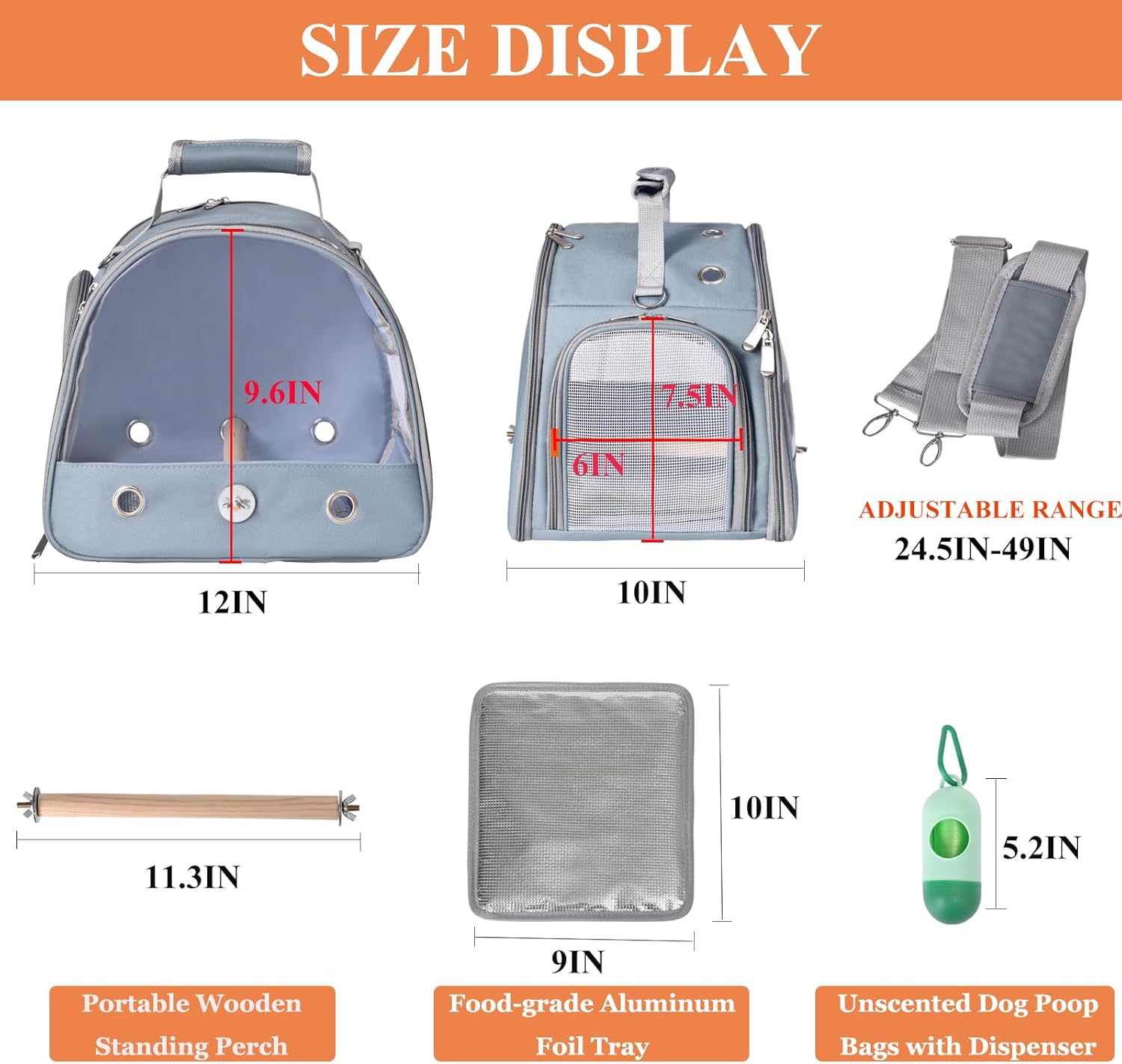- 1.Big Transparent Window: There is a large transparent window made of PVC in the front of the bird carrier bag. This clear window allows small pets to see the scenery outside during their travels, and you can keep an eye on your pets at all times