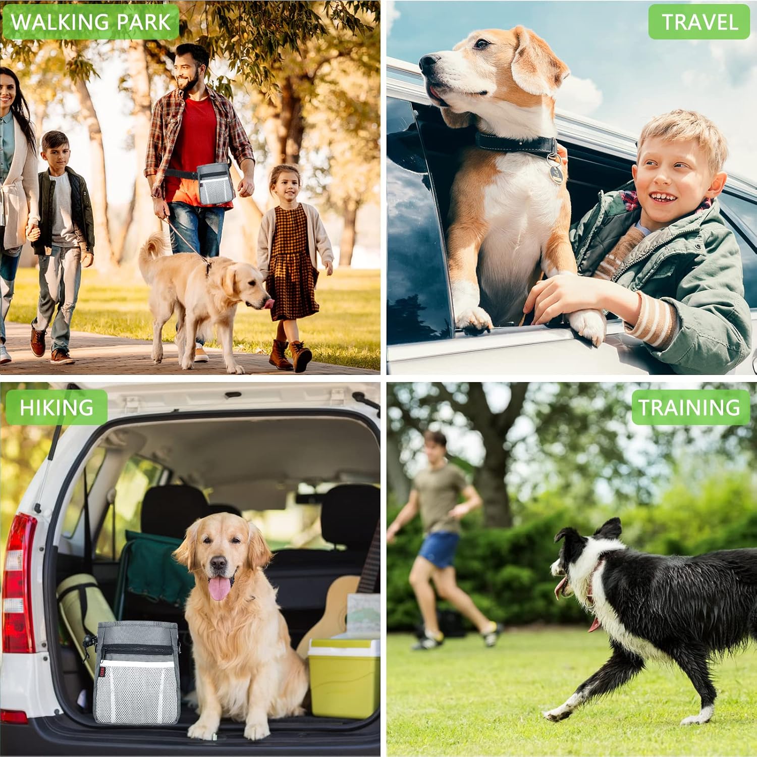 - Multiple Ways To Wear — Equipped with portable shoulder straps, waist belts and waist clips, you could find a comfortable way to wear the treat pouches for pet training without keeping your hands busy