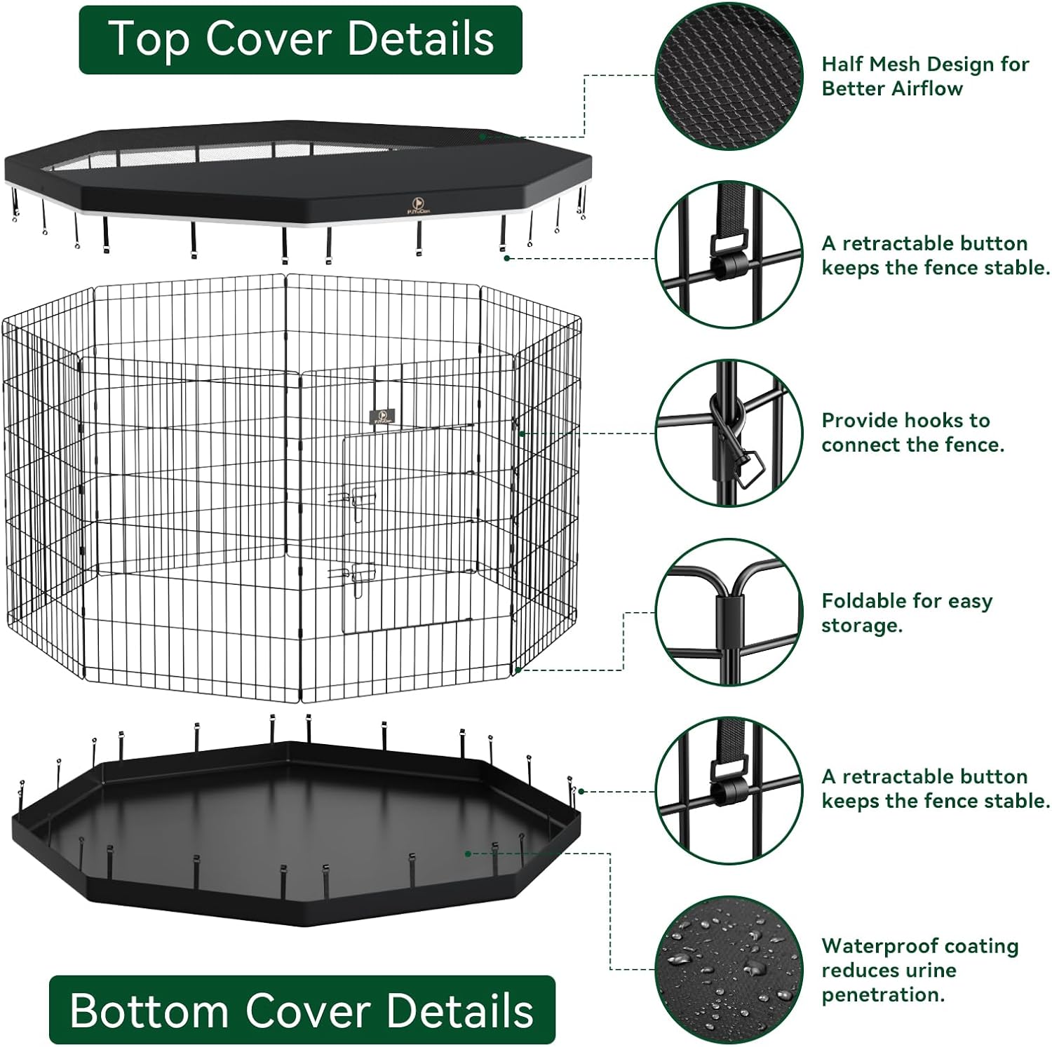 PJYuCien Dog Playpen, 8 Panels 24’’H Dog Pens Indoor with Bottom Pad and Top Cover, Metal Foldable Pet Puppy Exercise Fence Crate Kennel, Better for Small Animals,Black
