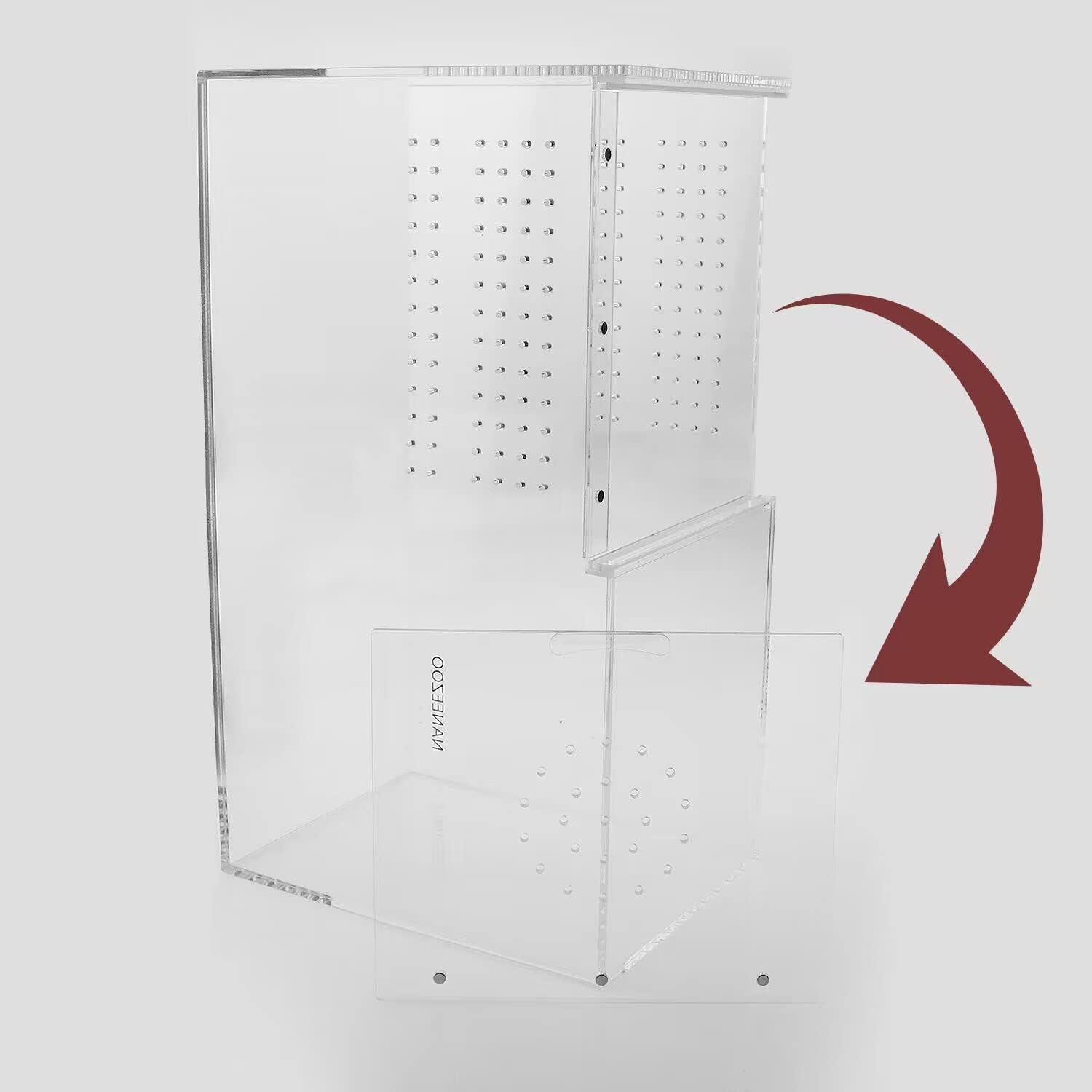 - 【2 in 1 Use: Horizontal Use & Vertical Use】This Acrylic breeding box is not only used for Terrestrial Animals, but also for Arboreal Animals. If placed vertically, it can be used for feeding tree dwelling Reptiles, Amphibians and Insects, if placed horizontally, it can be used for feeding Ground Dwelling Reptiles, Amphibians and Insects. This can help you to save money and efforts.