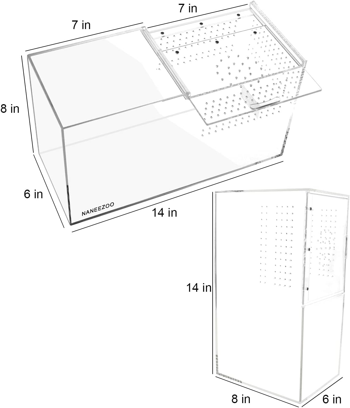 NANEEZOO Acrylic Reptile Terrarium Enclosure, 14”x6”x8” Tarantula Enclosure with Magnetic Sliding Door, Breeding Box for Arboreal Reptiles, Amphibians, Mantis, Spiders, Cricket & Other Invertebrates