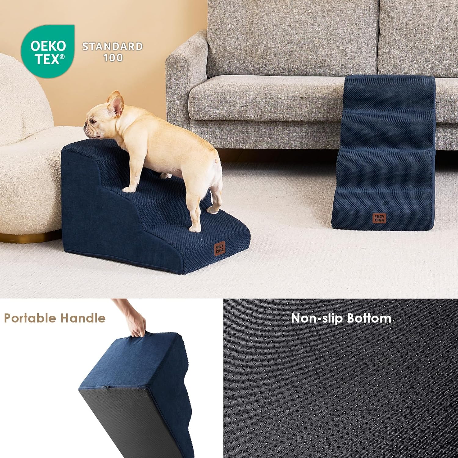 EHEYCIGA Curved Dog Stairs Ramp for Small Dogs 15.7" H, 3-Step Dog Steps for Couch Sofa and Chair, Pet Stairs for Cats, Non-Slip Balanced Pet Steps Indoor, Navy