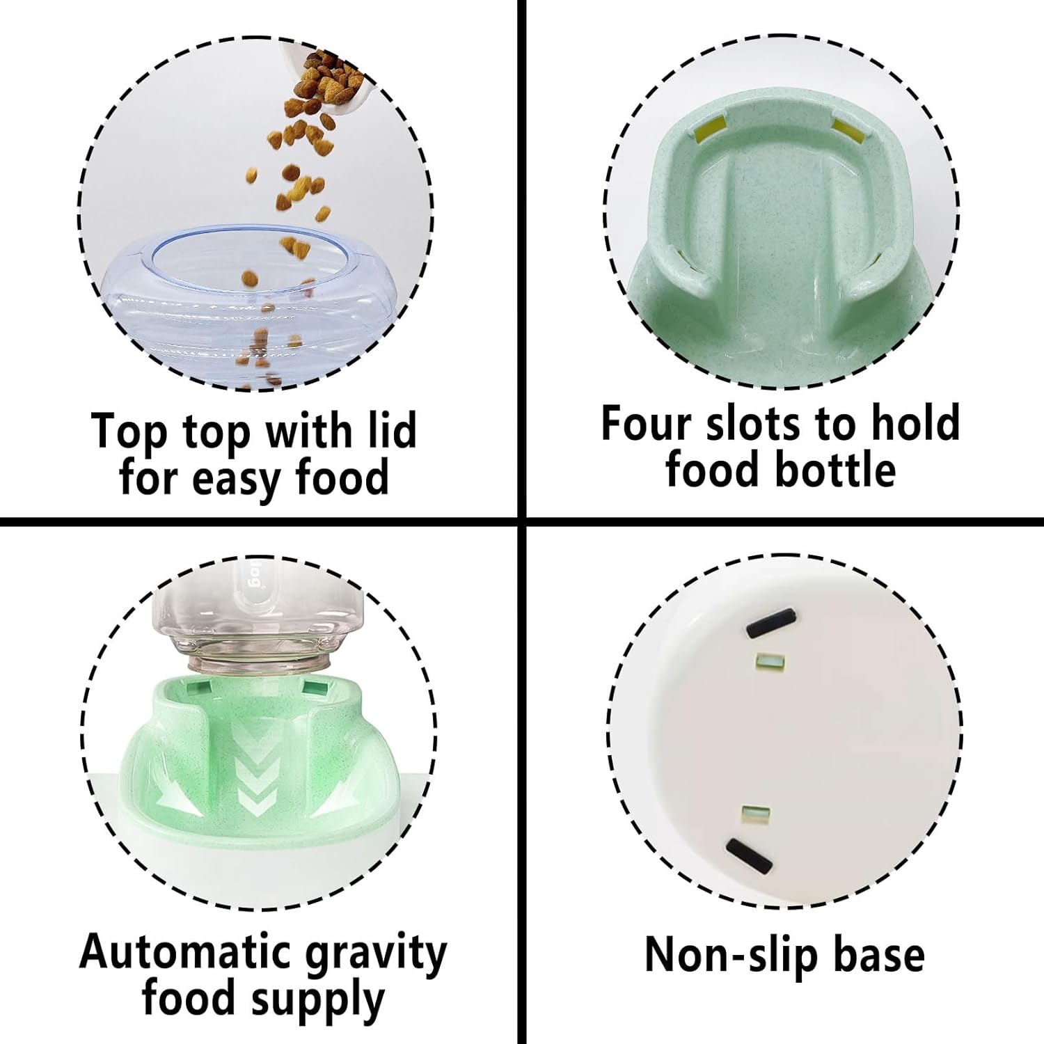 - 【Non-Slip Design】The top of the product is designed to remove the cap, convenient to add food, the base is solid, the center of gravity is low, it is not easy to overturn, the bottom of the four corners have anti-slip design, safety and stability do not need to worry about.