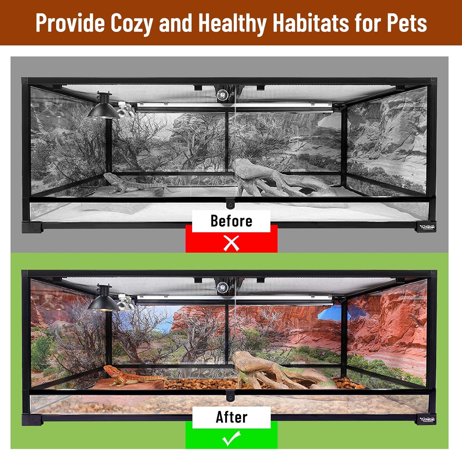 - Clean and No Odor: Natural coconut husk bedding can effectively hide and break down excrement, urine and other waste produced by reptiles, absorbing odors and keeping the habitat clean, hygienic and smelling odorless, it also keeps the indoor air fresh. It's an essential substrate for reptile tanks, especially for pet lovers