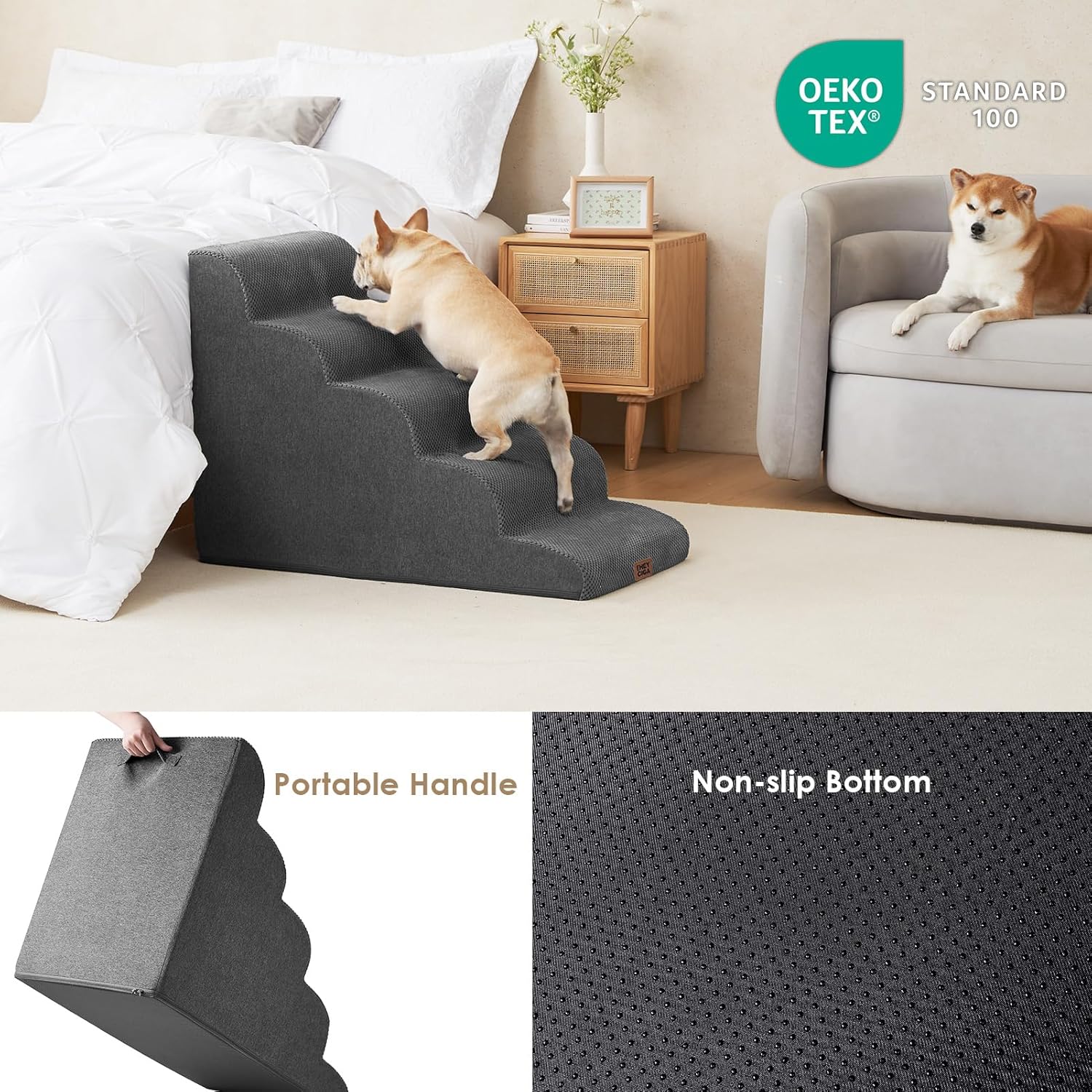 EHEYCIGA Curved Dog Stairs Ramp for High Beds, 5-Step Extra Wide Dog Steps for Small Dogs and Cats, Pet Stairs for High Bed Climbing, Non-Slip Balanced Pet Step Indoor, Grey