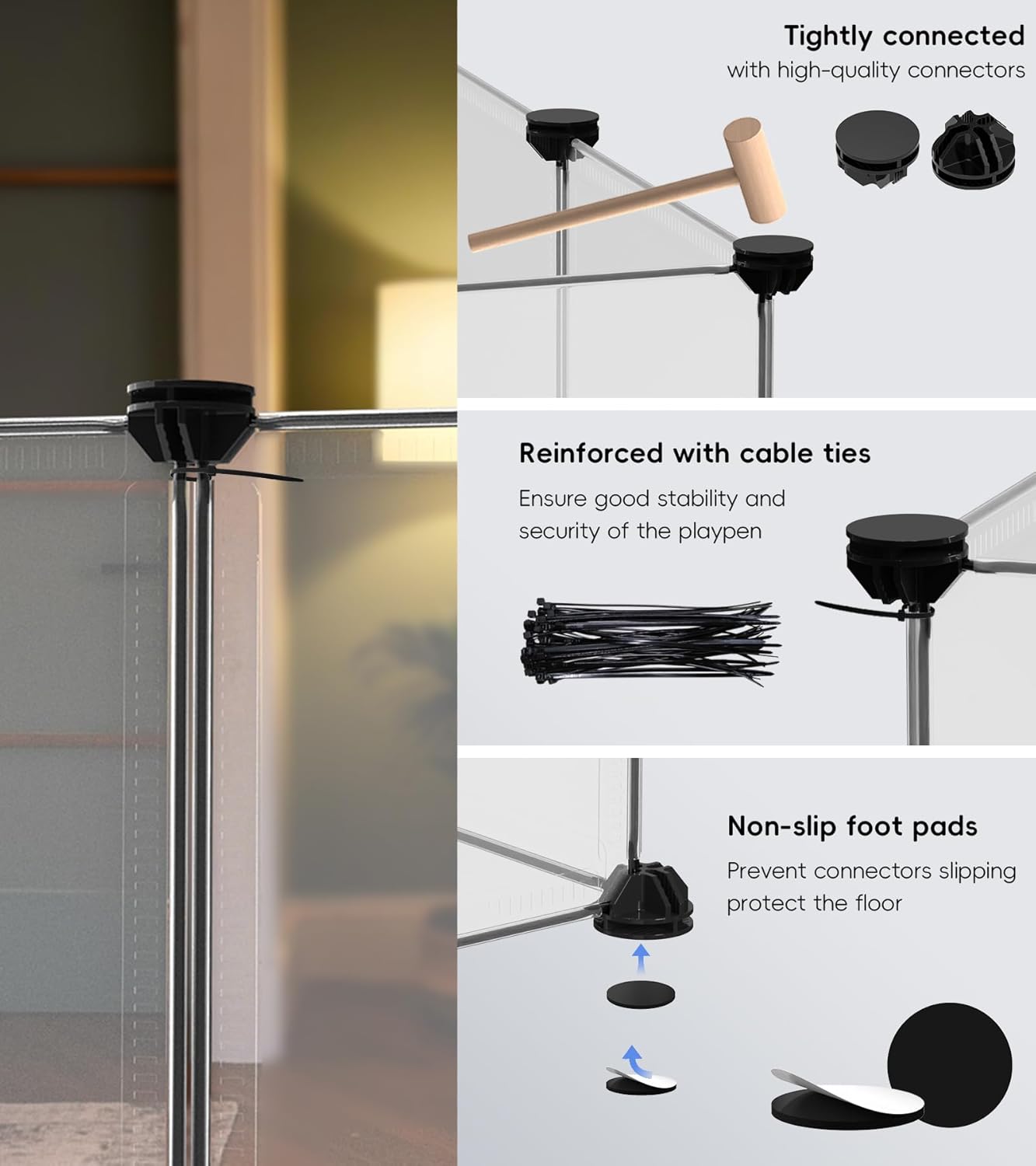 - ššššš¢š„š¢šš² šš§š šš«šØššššš¢šØš§: Equipped with 42 nylon straps to securely fasten the small pet fence, and 12 anti-slip mats to prevent the fence from sliding on the floor, providing a stable play area for your pets.