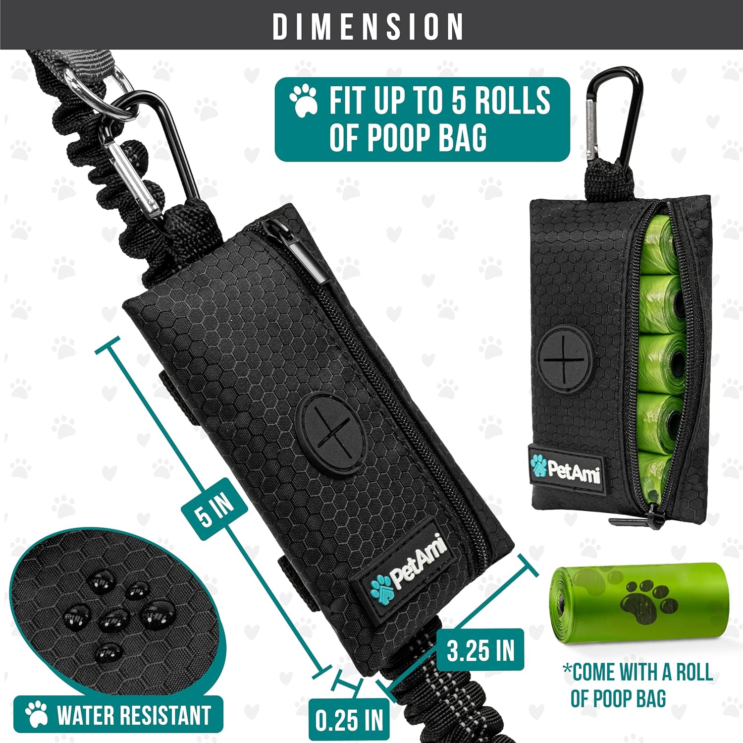 PetAmi Dog Poop Bag Holder for Leash, Dog Poop Bag Dispenser with Clip, Dog Waste Bag Holder for Pet, Dog Treat Pouch, Doggy Walking Camping Accessories with Trash Bag Roll, Black 1 Pack